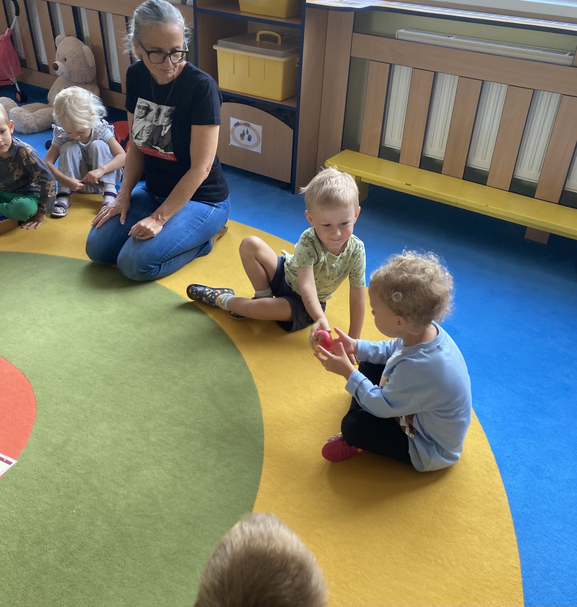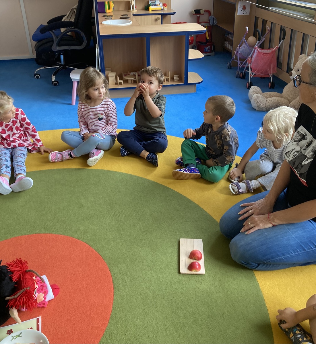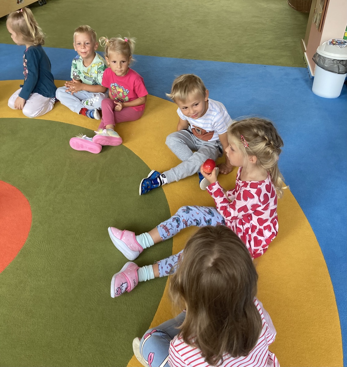 Nejdříve jsme si společně povídali o tvaru, barvě, vůni, prospěšnosti pro lidské tělo, zdroji vitamínů…. Probíhal rozhovor, kdo na své zahradě má také jabloň a kde asi jablka, která ochutnáváme, vyrostla. Dětem bylo prozrazeno, že jablka vyrostla na školní zahradě. Při pobytu venku jsme jabloň vyhledali a dohodli jsme se, že ji budeme pozorovat v různou roční dobu a budeme sledovat její změny.