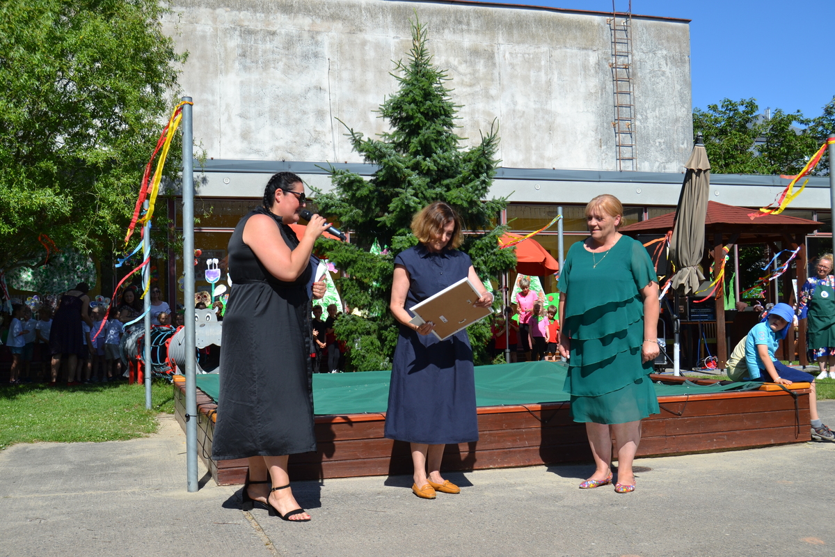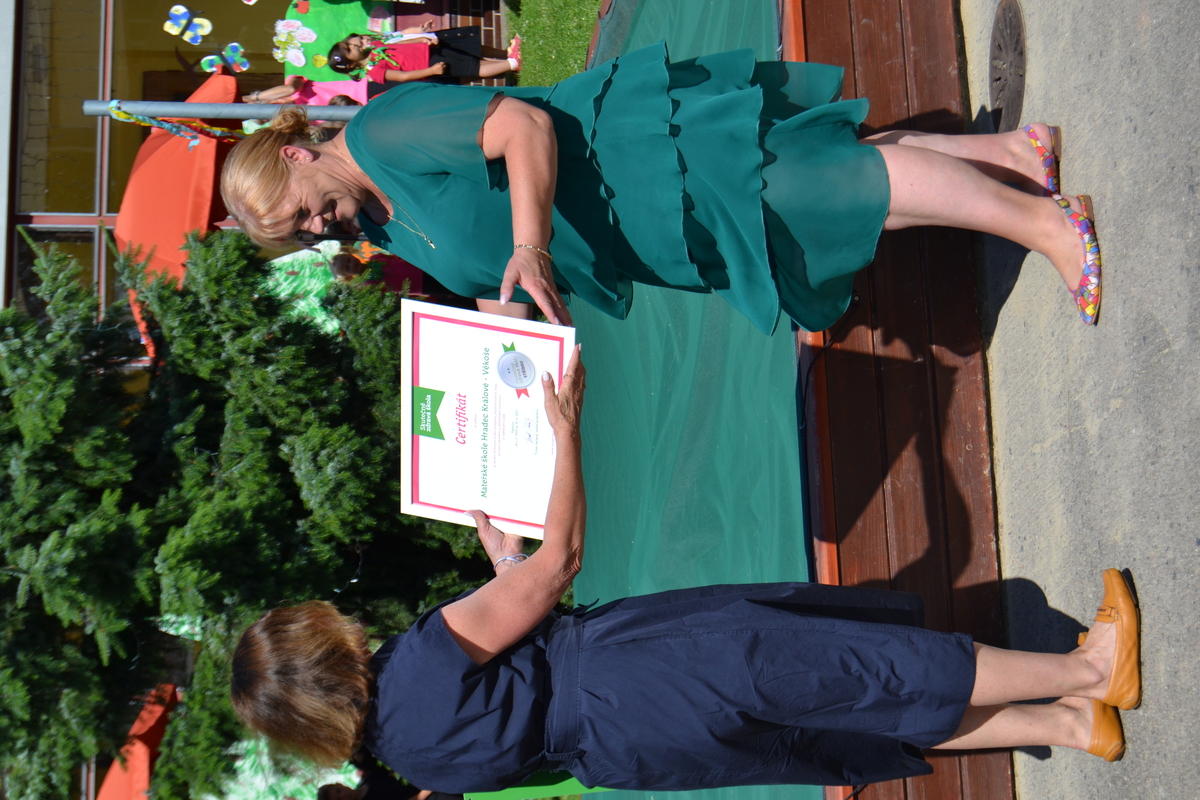 Dostali jsme se tak na další úroveň - jako první mateřská škola v Královéhradeckém kraji jsme získali stříbrný certifikát. Slavnostního předání na naší zahradní slavnosti se ujala Ing. Karolina Kallmünzerová, manažerka programu Skutečně zdravá škola. Přijala také pozvání ke slavnostnímu otevření naší Jedlé zahrady - projektu, který byl realizován díky finanční podpoře společnosti Lidl a programu Skutečně zdravá škola.