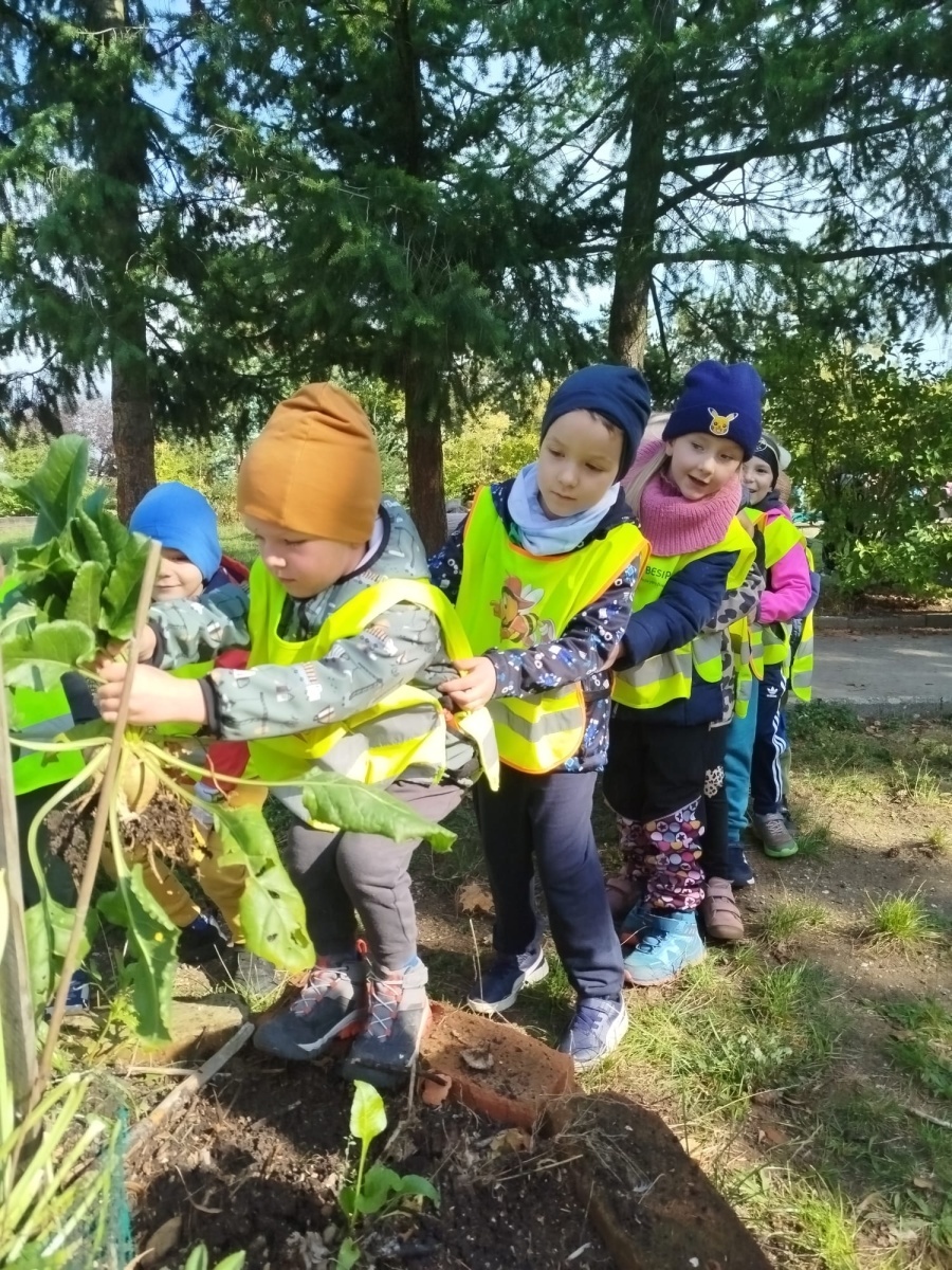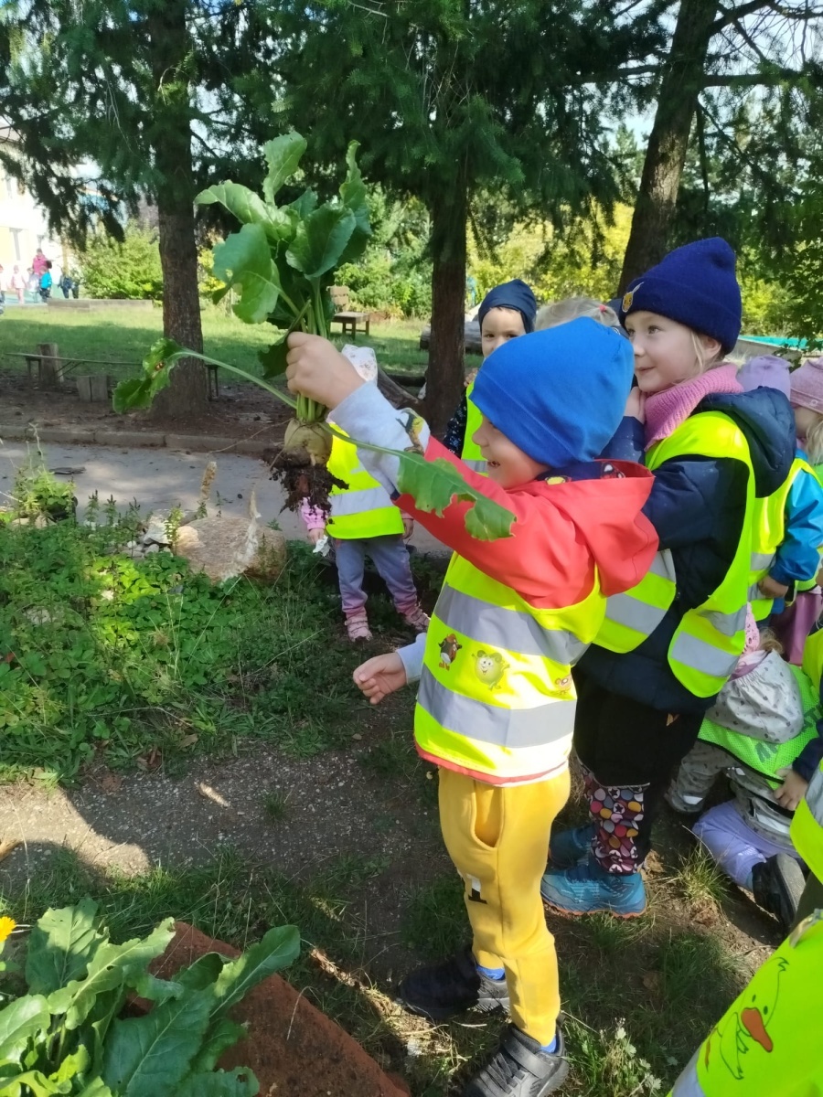 Snažíme se dětem pro pěstování nabízet i méně obvyklé plodiny (které znají ze svých zahrádek). Letos to byla cukrová řepa, která se sice v okolí hojně pěstuje, výhradně ale jako krmná plodina. Na našem africkém záhonu se jí dařilo a tak vyrostla řepa veliká, jako v pohádce. Společně jsme ji vytáhli a sklidili.