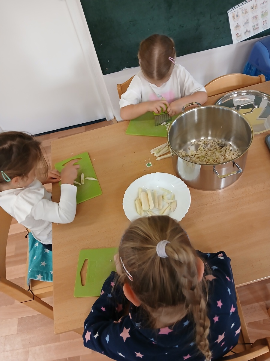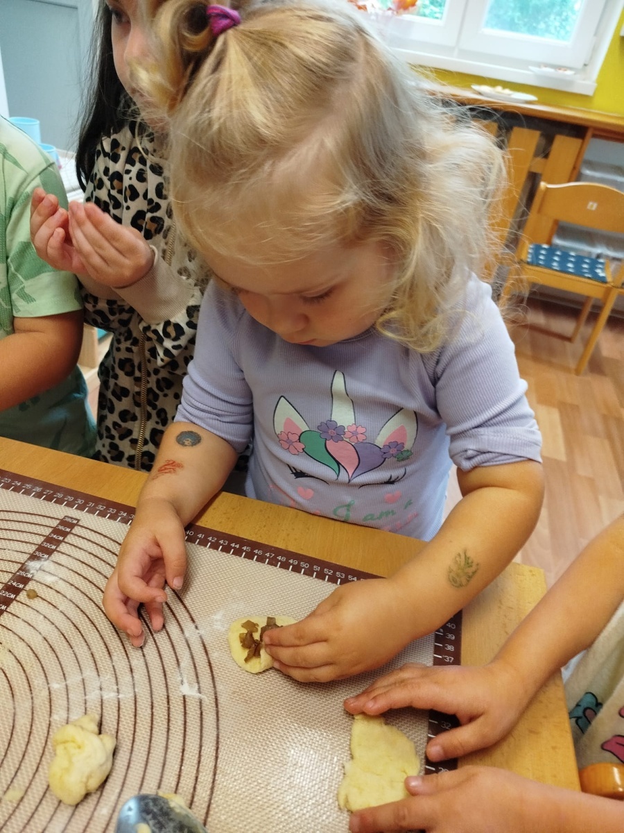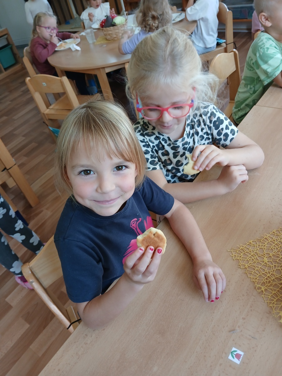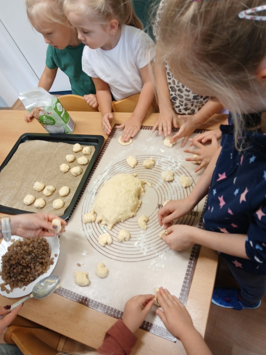 Řepu jsme očistili a nakrájeli na malé kostičky - společně s perníkovým kořením jsme je uvařili v troše vody do měkka. Mezitím jsme zadělali kynuté těsto, které jsme plnili uvařenou směsí a tvořili malé "buchtičky". Upekli jsme v troubě do zlatova a už jsme si pochutnávali na sladké dobrotě. Ochutnat jsme dali i paním kuchařkám a také rodičům. Jsme rádi, že se nám řepánky povedly!