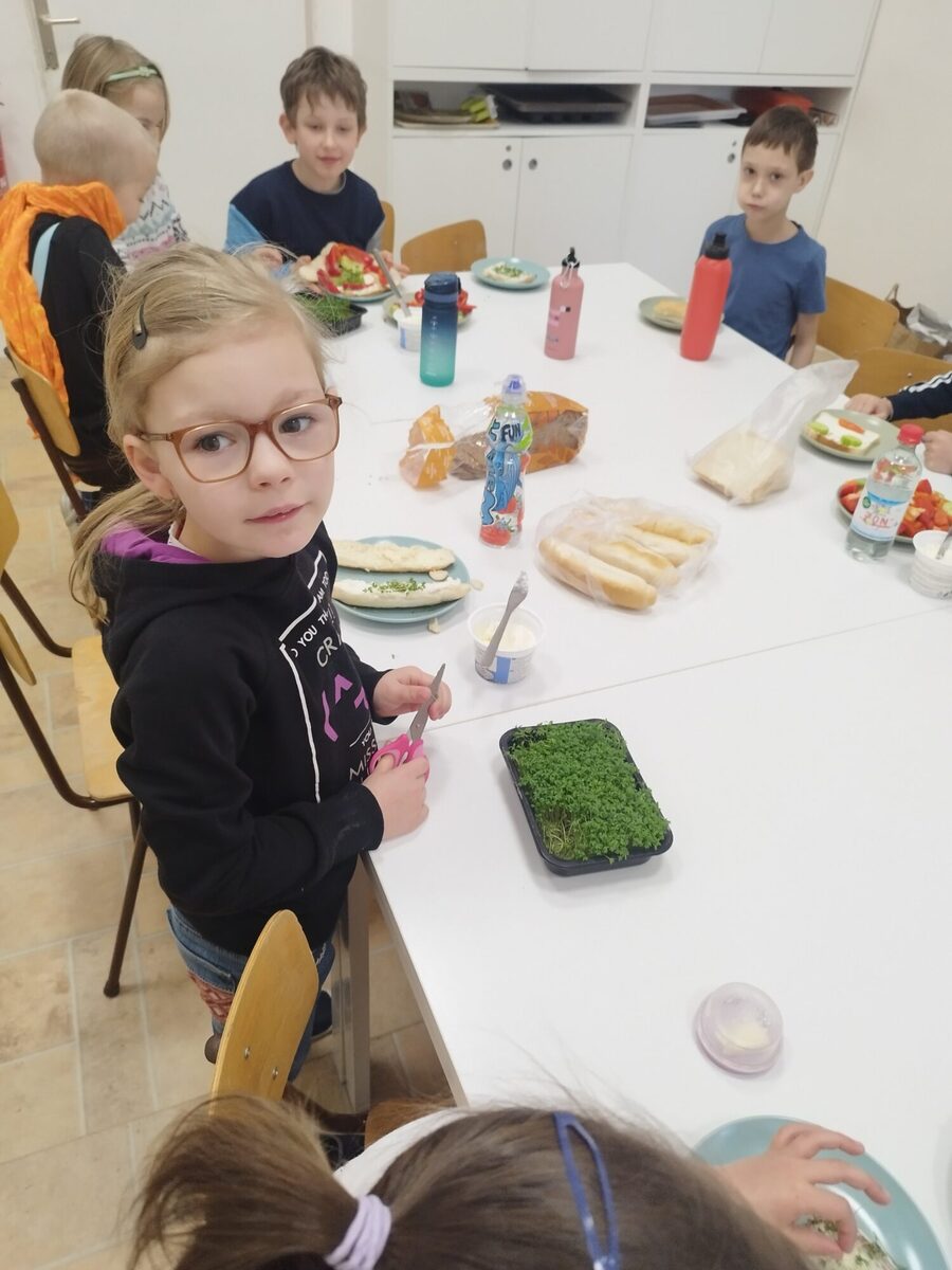 V teple třídy ještě pár dní pod pravidelným dohledem žáků řeřicha rostla a nakonec přišla odměna. Všichni si společnými silami připravili zdravou snídani plnou zeleniny a samozřejmě s láskou vypěstované řeřichy.