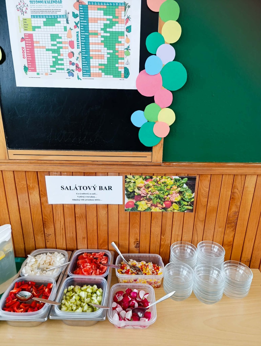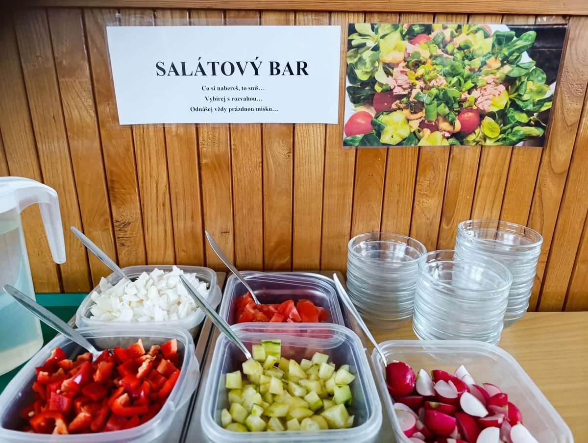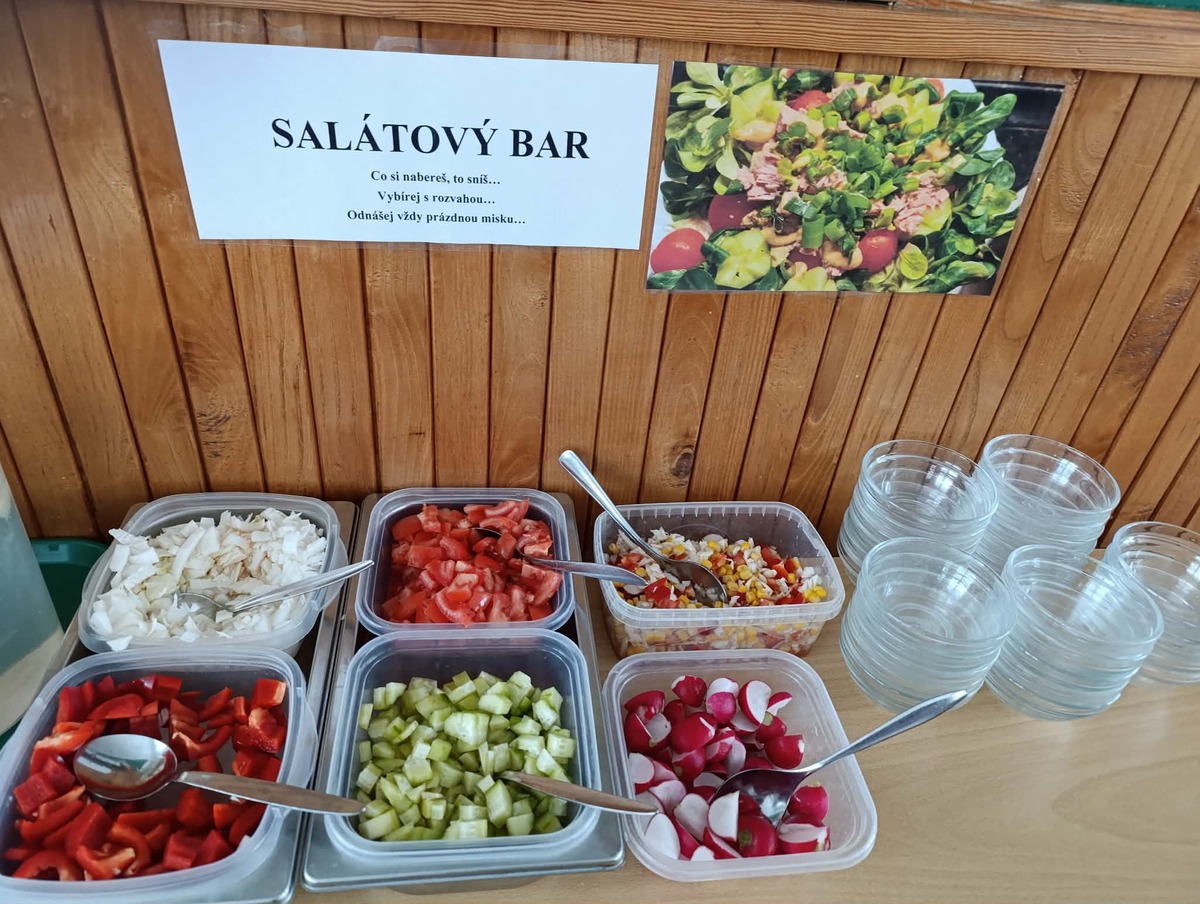 (zatím ve zkušebním provozu). Strávníci si mohou sami vybrat z několika druhů čerstvé zeleniny a míchaného salátu podle chuti.