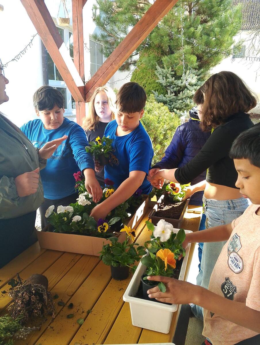 Žáci 4. a 5. třídy navázali na nákup květin v místním zahradnictví Zahrada Cítoliby a s nadšením se pustili do jejich sázení. Barevné květiny zasadili do truhlíků, které doplnili o veselé jarní zápichy.