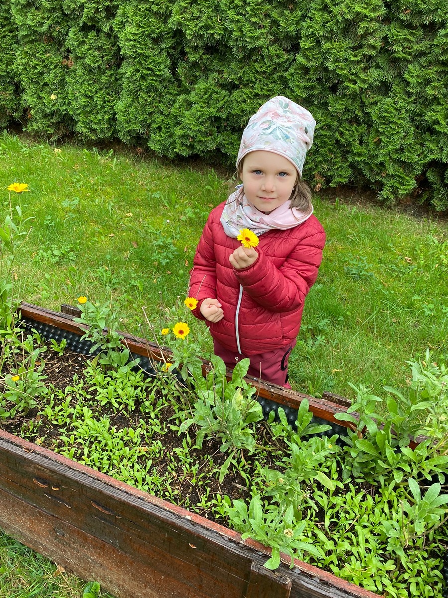 Na naší zahradě jsme si v záhonku nasbírali bylinky, které jsme si nasušili, abychom si z nich potom mohli uvařit čaje.