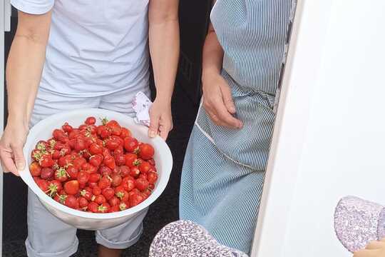 Ráno jsme se vydali na sběr jahod u nás ve vsi. Sbírali jsme...hodně do pusinky a trochu do košíčku:-). Ještě jsme slíbili nějaké jahody našim školkovým kuchařkám, prý nám z nich udělají jahodové knedlíky. Zítra si je budeme moci zabalit a ony nám je uvaří. Mňam těší se celá školka.