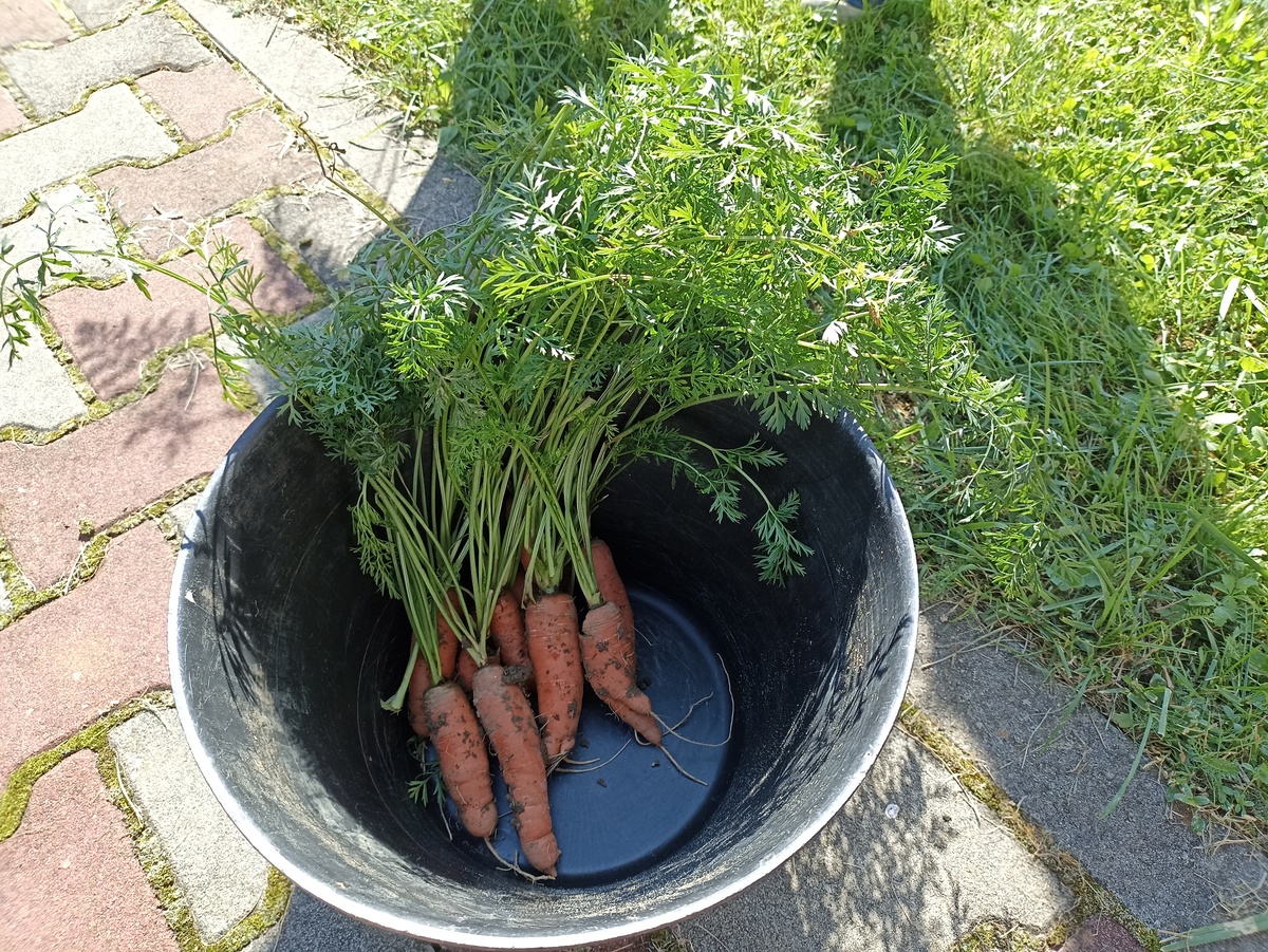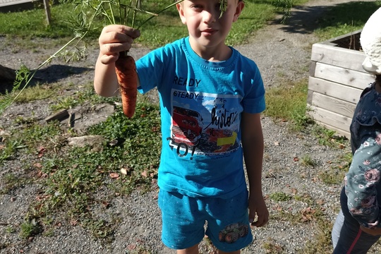 Letos se nám urodilo hodně mrkve. Polovinu jsme již posbírali a paní kuchařka nám z ní připravila zeleninovou polévku s mrkví. Mňam :-)