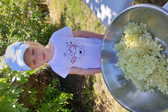 Děti na školní zahradě pomáhaly paní učitelce s otrháváním květů šeříku. Poté nám z něj uvaří paní kuchařka šeříkový sirup, který ochutnáte na farmářském dni.