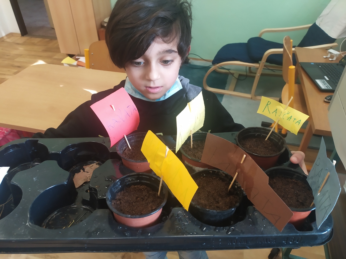 V hodinách praktických činností s nejmladšími žáky jsme se vrhli na vysetí prvních semínek. Zvolili jsme papriky a rajčata, které si v prostředí třídy předpěstujeme jako ve skleníku a v červnu přesadíme na školní zahradu. Každý žák dostal do ruky pytlík se semínky. Společně jsme si vysvětlili piktogrami, vyseli rajčata a papriky a hrášek, ředkvičky, cibuli a špenát jsme si uschovali na výsadku do země. Čekají nás ještě vysít kedlubny a celer. To zase přenecháme starším žákům.