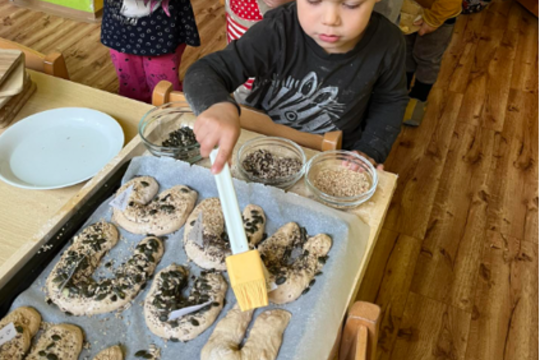 Sezónních surovin nevyužila ale jenom jídelna. Třída Sluníčko si s paní učitelkou každý pátek upekla nějakou dobrotu. Nejoblíbenějšími surovinami byli brambory, jablka nebo bylinky z jejich vlastní zahrádky.