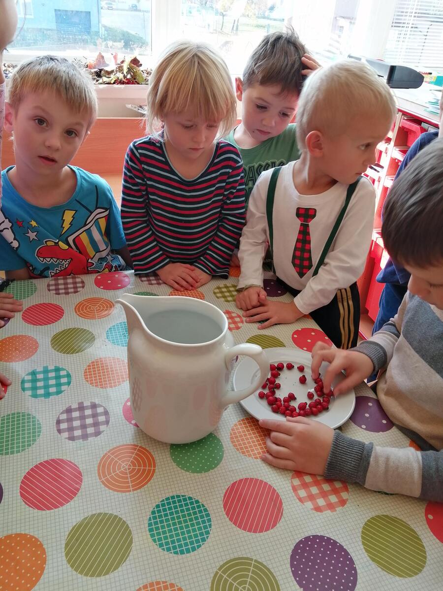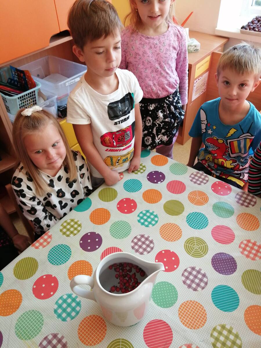 Děti z Beruškové třídy nasbíraly společně s p. učitelkami na vycházce na Vrše šípky a udělali si šípkový čaj, který poté ochutnaly. Foto a text: Veronika Bártová