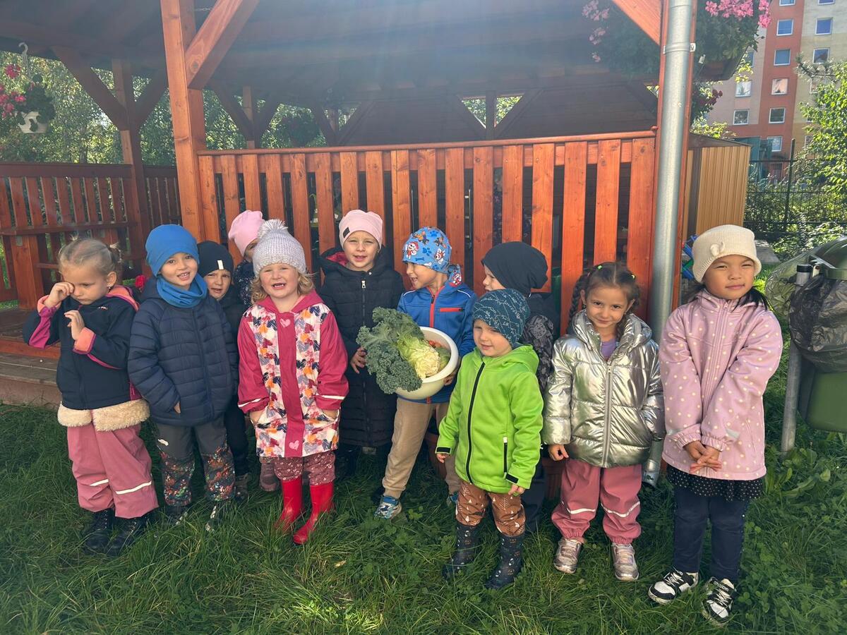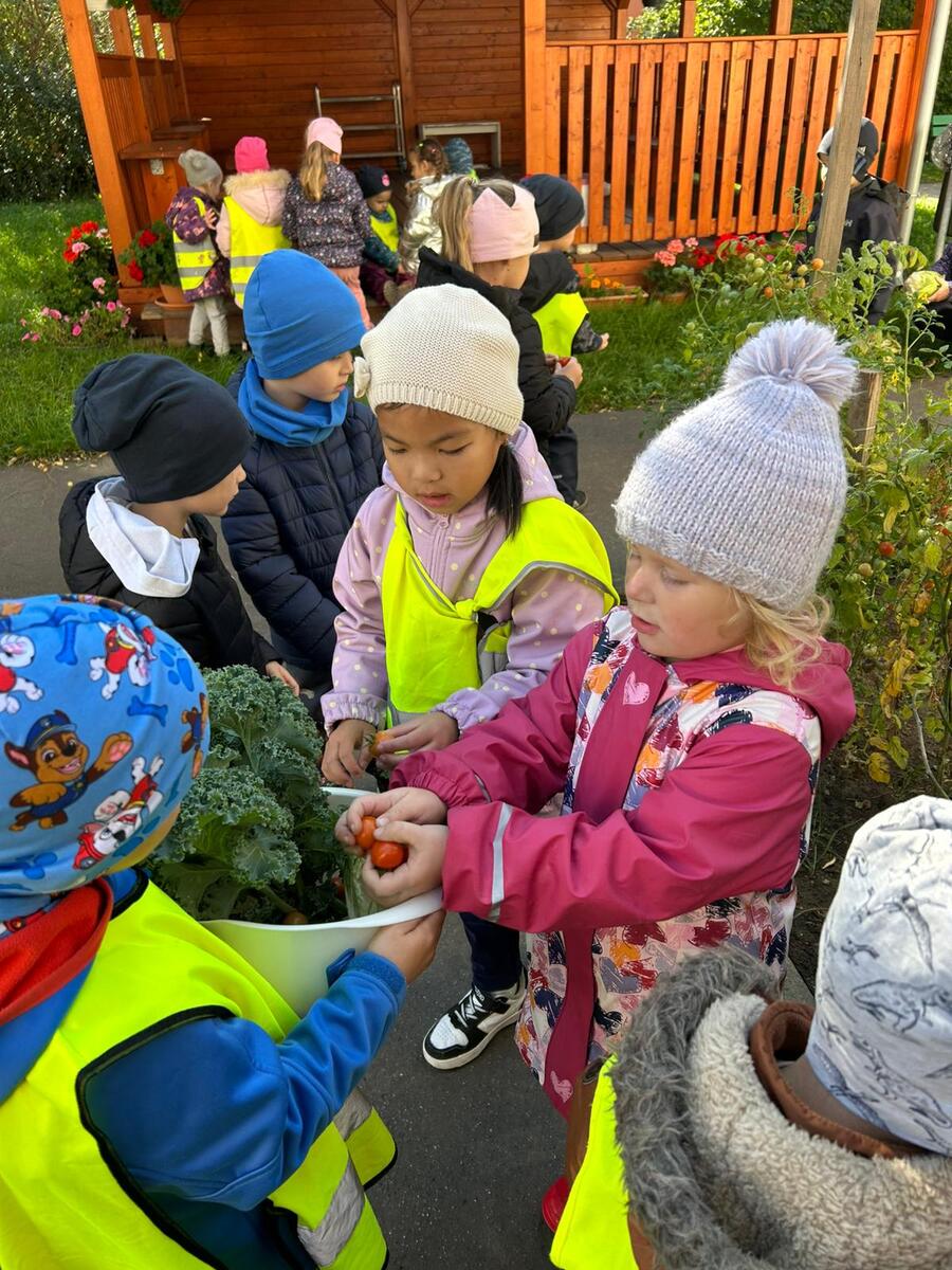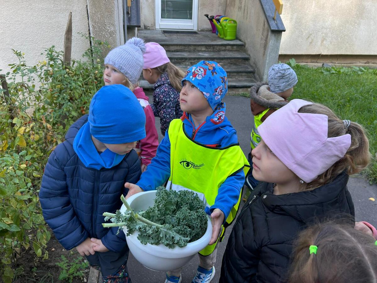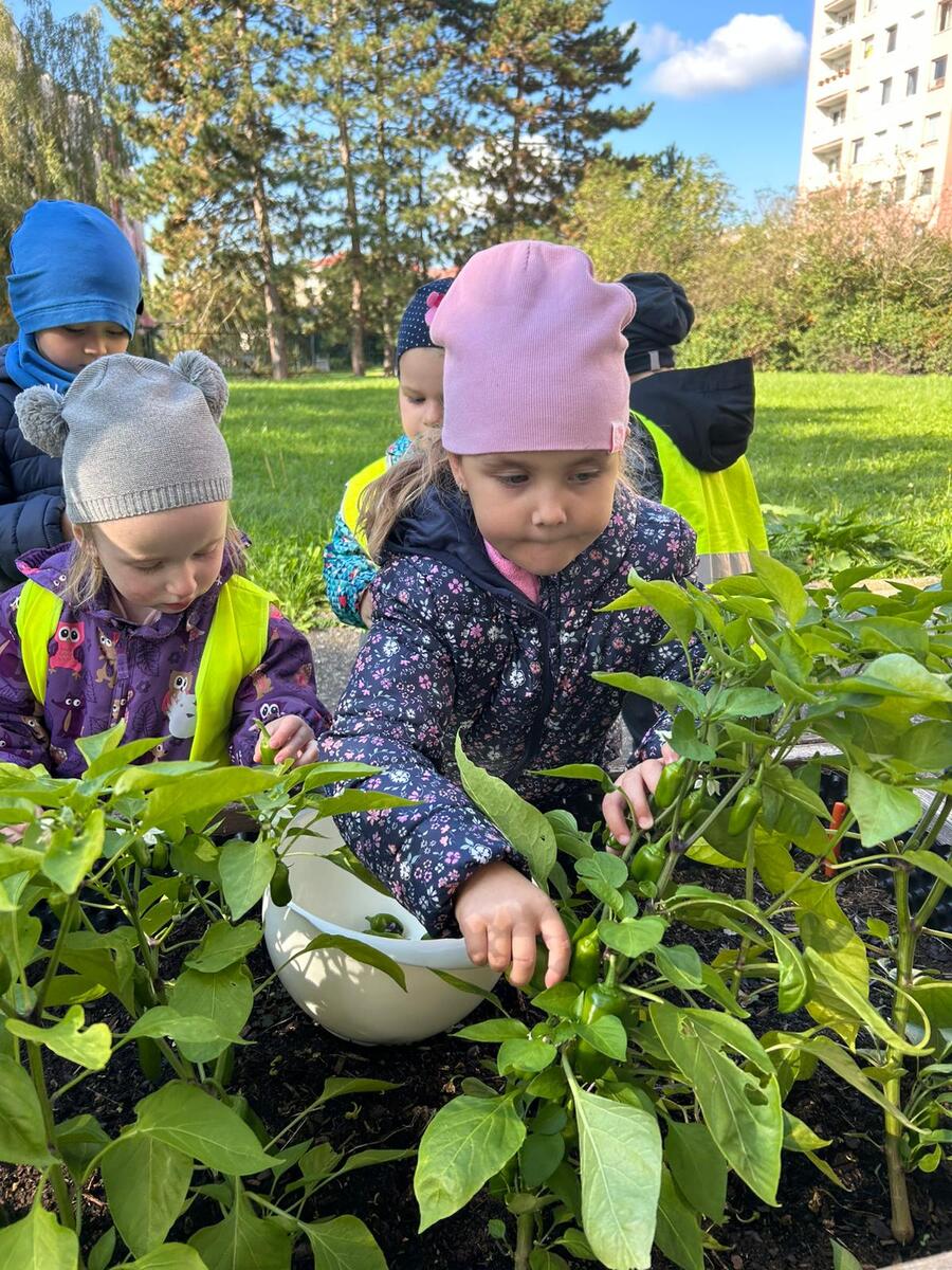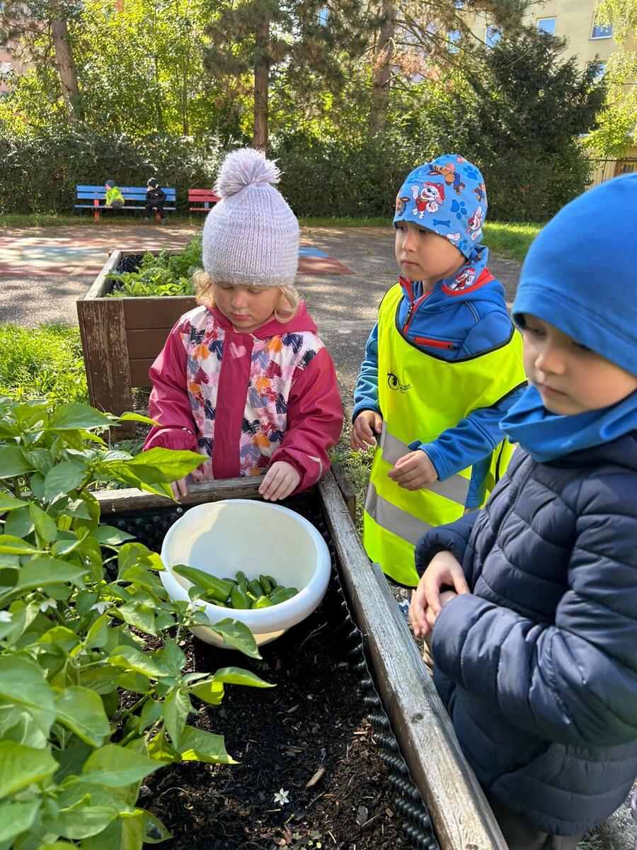 Děti ze Žlutého motýlku sklízely poslední letošní úrodu z naší zahrádky.