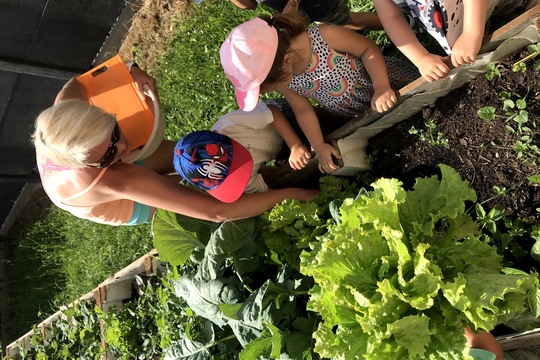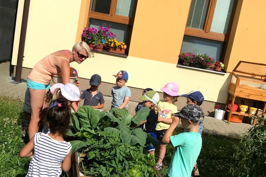 Na zahradě MŠ jsme si postupně s dětmi a svépomocí vybudovaly vyvýšené záhony, bylinkovou zahrádku, zeleninové pařníčky apod. Letos "po zmrzlých" jsme s dětmi vysadily saláty, kedlub, papriky, rajčátka, bylinky, hrášky, ředkvičky a mnoho jiného. Společně se o zeleninku staráme - plejeme, zaléváme, pozorujeme a kontrolujeme....a tedy jsme se i setkaly s problémy, se kterými se potýká mnoho zahradníků. Jeden z velkých problémů a nepřátel zahradníků se nazývá "slimáci" ...a právě ti nám zbaštili hrášky, papriky i ředkvičky. Uličníci. Salát jsme ale zachránily. To děti ocenily zvlášť, protože již dobře vědí, že vlastnoručně vypěstovaný, opečovávaný a zpracovaný salát chutná 100x více, než ten z obchodu, za kterým není vidět ten kus lidské práce a péče. A takový salát z "domácí školní" zahrádky, opravdu chutná nejlépe.