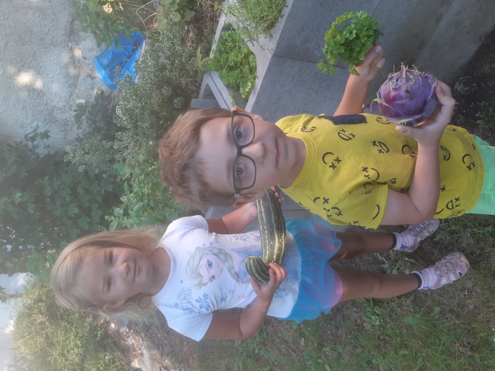 Už jsme se dočkaly a sklidily úrodu z naší školkové zahrádky. Paní kuchařce jsme donesly cukety, kedlubny a bylinky do polévky. K obědu nám paní kuchařka uvařila cuketový nákyp se zelím a mrkvičkou. Ke svačince jsme si otrhaly rajčátka, která nám pořád krásně dozrávají. Už se těšíme na sklizeň dýní a dýňovou polévku. Děti z MŠ Zámeček