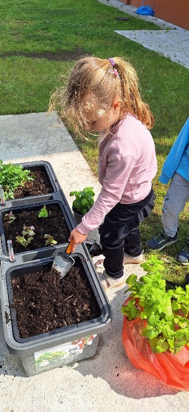 Velkou součástí našeho života ve školce je školní zahrada. Není to jen místo na hraní, ale prostor, kde se děti učí zodpovědnosti a trpělivosti. Společně pěstujeme zeleninu a bylinky, děti samy zalévají, pozorují, jak rostlinky rostou, a přirozeně chápou, že bez pravidelné péče se nic neurodí. Díky tomu si vytvářejí vztah k jídlu i k práci, která za ním stojí.