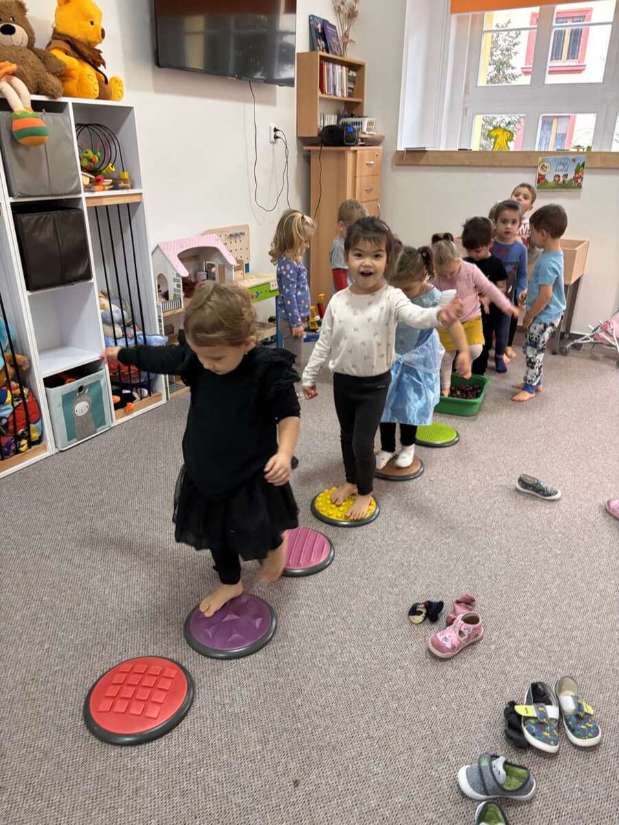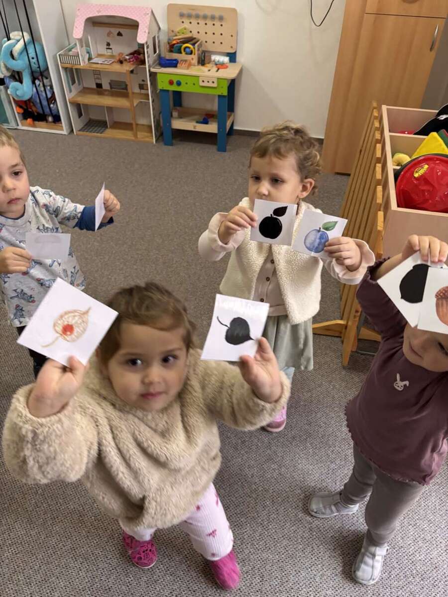 Tenhle týden jsme s dětmi objevovali krásy podzimu! ???? Sbírali jsme barevné kaštánky, malovali ježky, podbíhali pod padákem a zkoušeli přiřazovat, co patří k podzimu v obrázcích, a hledat dva stejné listy. Odvážní si vyzkoušeli projít „zdravý chodníček“ z kaštanů a šišek a také jsme se učili hrát pexeso. A hlavně – barvy podzimu jsme si celý týden opakovali a bavilo nás to! ????????