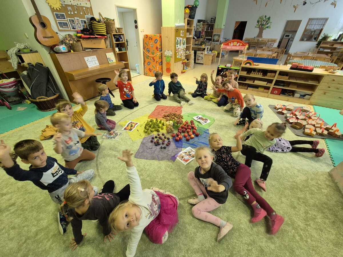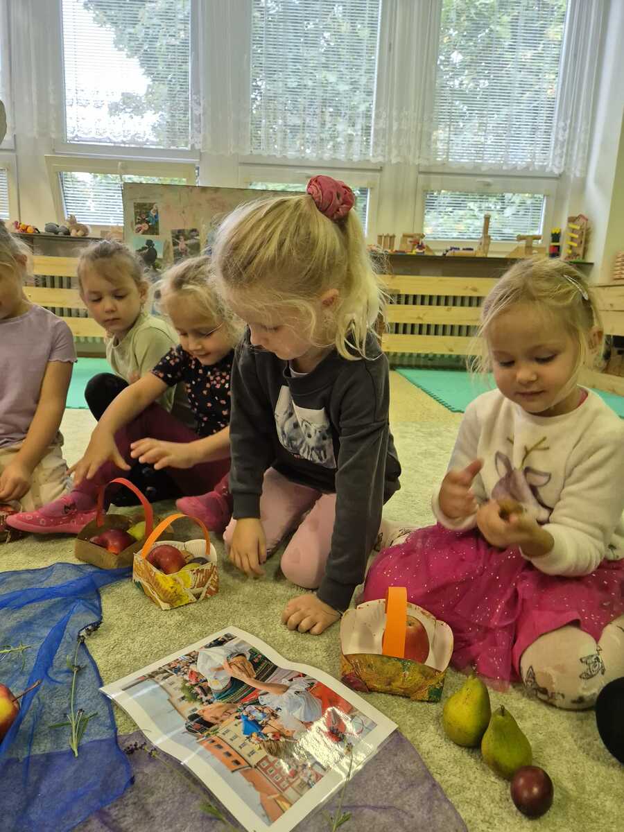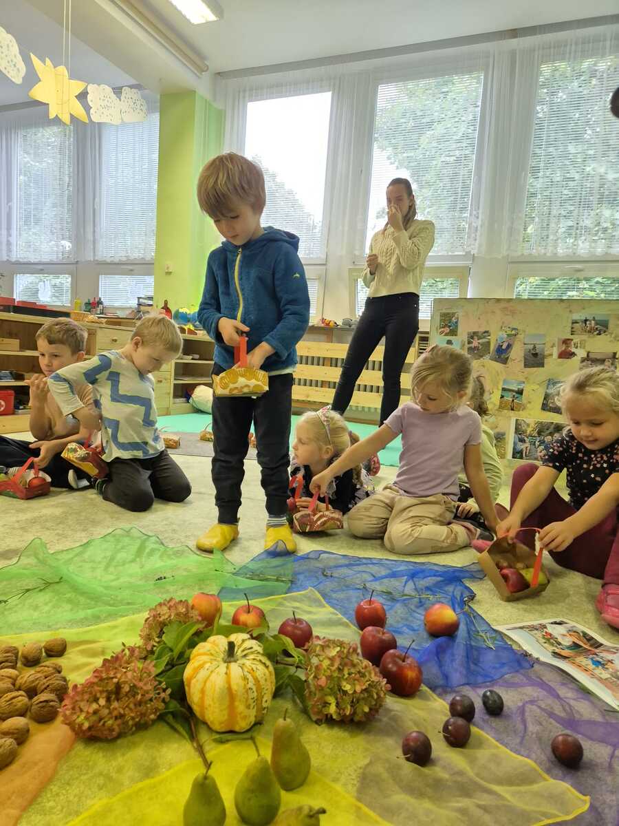 Děti společně prožily Slavnost sklizně, při které symbolicky poděkovaly za dary přírody a společně si uvědomovaly význam práce lidí, kteří se starají o to, abychom měli jídlo každý den na stole. V rámci rituálu dožínkové slavnosti si každé dítě do svého košíčku odneslo ovoce a ořechy – prožilo tak pocit sounáležitosti, sdílení a vděčnosti.