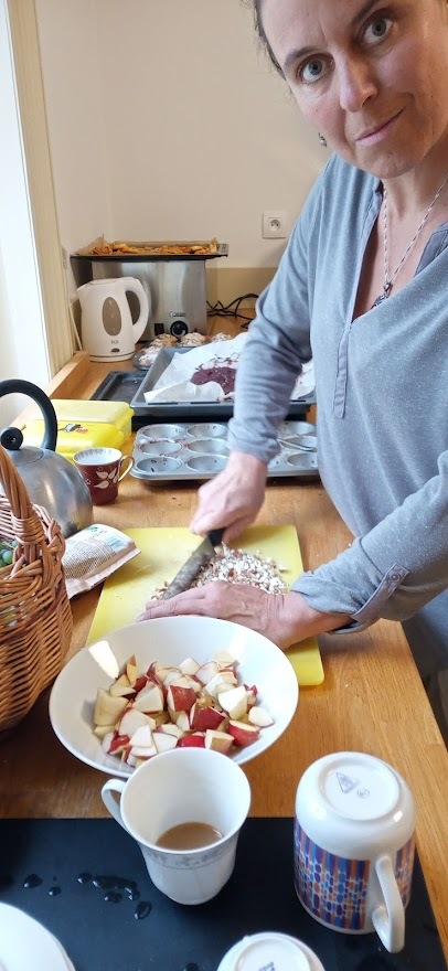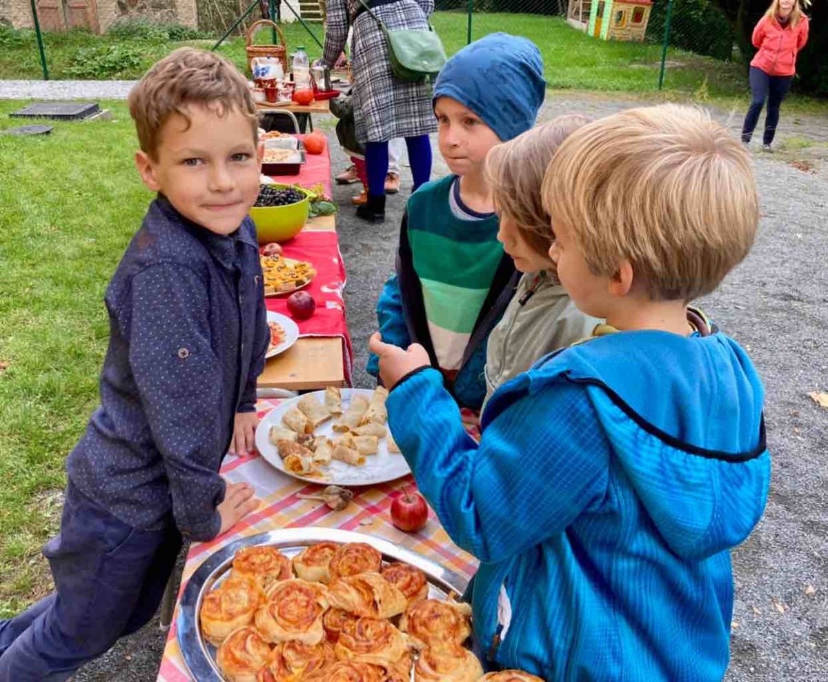 Děti si nejprve v malých skupinkách vytvořily vlastní recepty a následně se pustily do společného vaření a pečení. V odpoledních hodinách se k dětem připojili někteří rodiče a pomáhali jim z různých právě sklizených dobrot vytvářet ještě lepší pochoutky. Společně se hlavně peklo, krájelo, vařilo, ale i napřiklad moštovalo. Děti byly nadšené i z domácích pomazánek, zejména pomazánka z pečené dýně hokkaido či pomazánka z červené řepy uchvátila nejedno děťátko.
