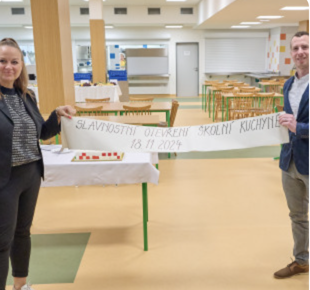 Slavnostní pásku přestřihl primátor Jiří Korec společně s náměstkyní pro školství Martinou Hladíkovou, která také rozkrojila slavnostní dort. Hosté si prohlédli nejen nově zrekonstruovanou kuchyni, ale také rekonstruovanou kotelnu a Chill zónu pro žáky, která byla realizována díky sponzorským darům a bude využívaná nejen v hodinách tělesné výchovy, ale také např. při wellbeingu.