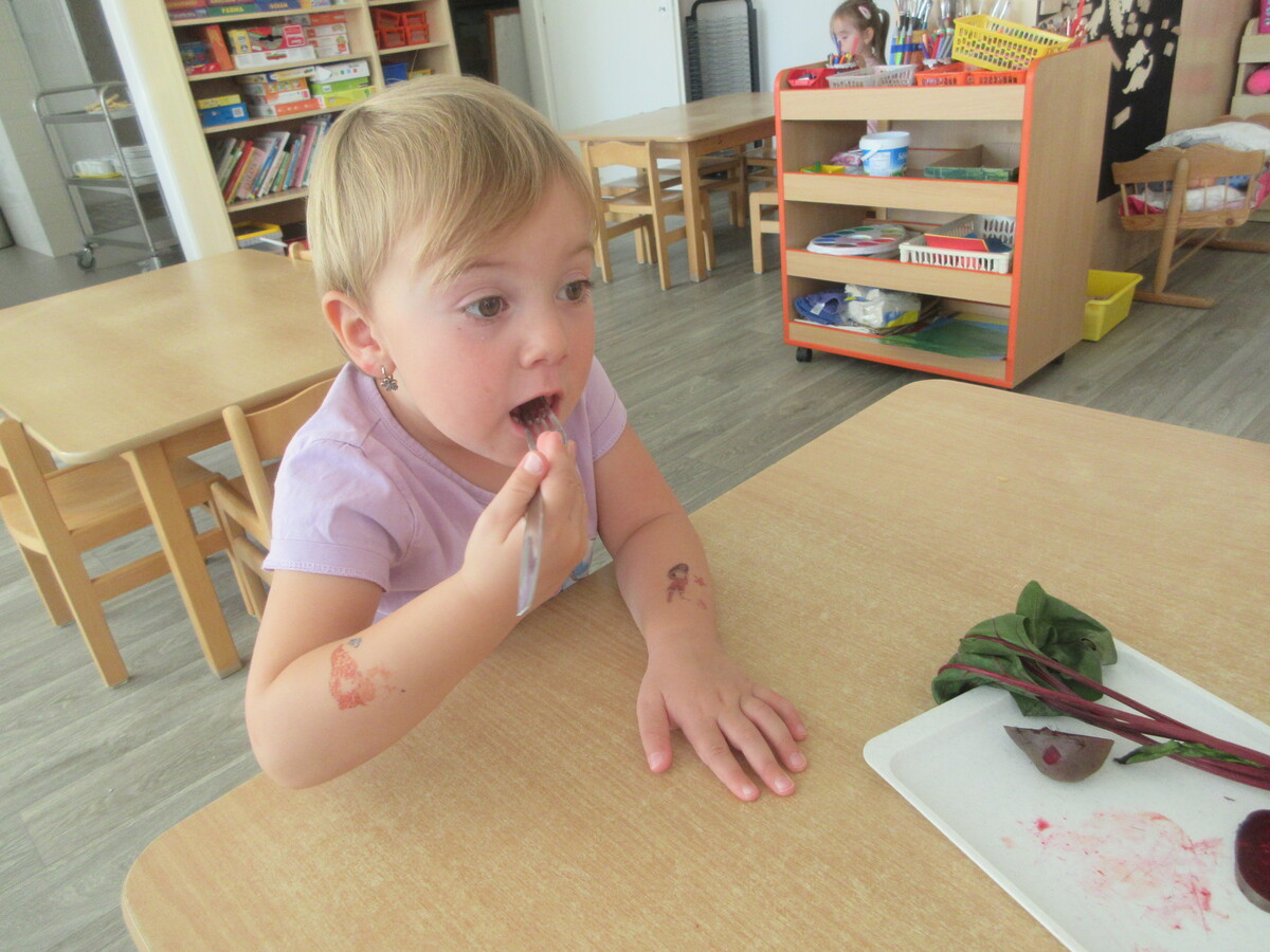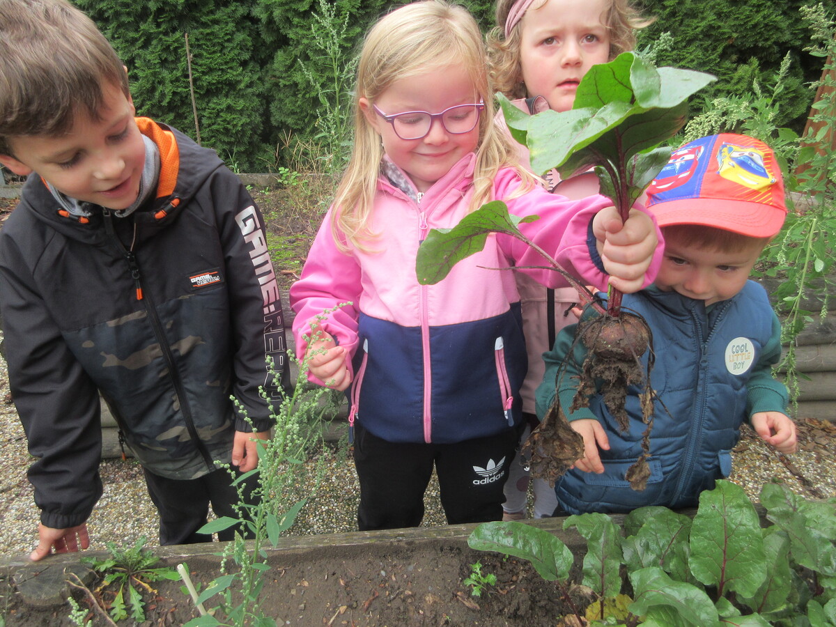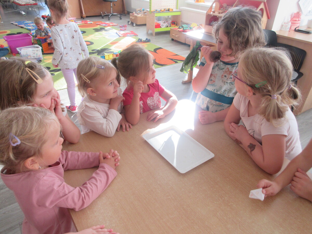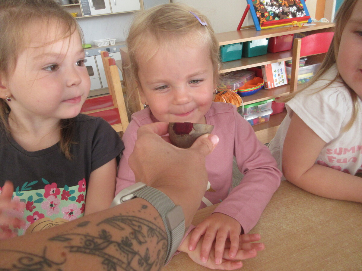 Děti ze třídy Sluníčko se v novém školním roce s radostí pustily do práce na svém záhonu. Společně sklidily řepu, kterou na jaře zasely. Společně si ji ještě u záhonu pořádně prohlédly – objevovaly její kořen, listy i vůni. Ve třídě pak řepu zkoumaly všemi smysly: osahaly její tvar, přivoněly si k čerstvě utrženým listům a některé ji i ochutnaly. Nezapomněly ani na bylinky, které na záhonu rostou. Nejvíce je zaujala voňavá meduňka a svěží petrželka. Děti si tak hravou formou rozšiřovaly znalosti o rostlinách a učily se pečovat o přírodu kolem sebe.