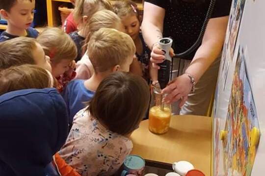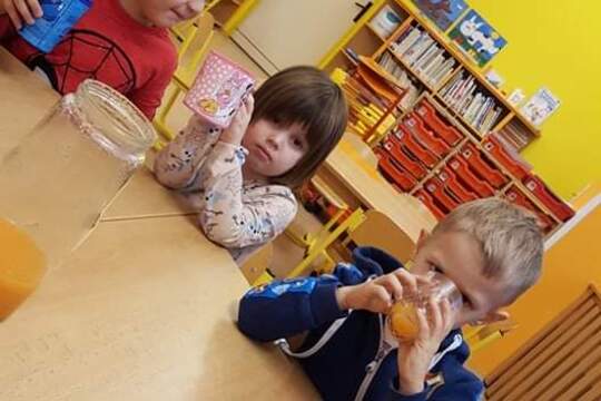 Děti ze třídy Broučci (4-5let) si vyrobily Smoothie z jablek a mrkve. Ovoce a zeleninu umyly, paní učitelka ji očistila a děti jablka a mrkev nakrájely na kousky. Ty přidaly do džbánu s vodou. Paní učitelka všechno rozmixovala a nalila Smoothie dětem do hrníčků. Děti ochutnávaly a mnohým to velmi chutnalo.