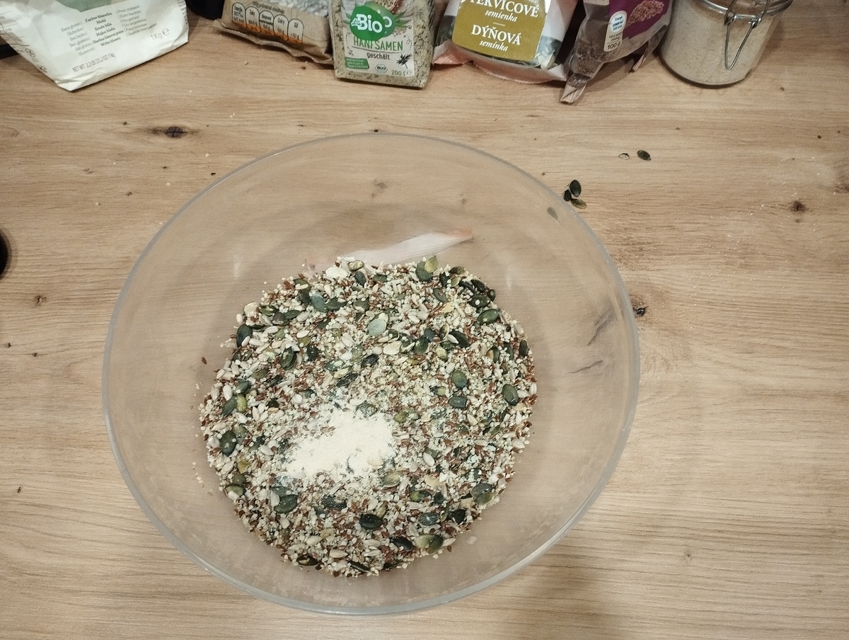 - můžete přimíchat i trochu proteinového prášku bez příchuti pro lepší poměr bílkovin.