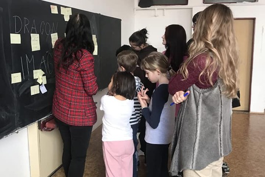 Díky tomu, že jsme součástí programu "Skutečně zdravá škola" máme jedinečnou příležitost získat grant na projekt "Jedlá školní zahrada". Pozvali jsme proto do školy Ivanu Mertovou lektorku metody Dragon dreaming, aby zjistila od dětí i dospělých co nejvíce nápadů, jak by měla taková zahrada snů vypadat. Děti si přály například bazén, prolézačky, airsoft areál a obrovskou trampolínu. Dospělí bylinkovou zahrádku, skleník, ovocné keře a stromy, ale například i přistávací plochu pro UFO. :-)