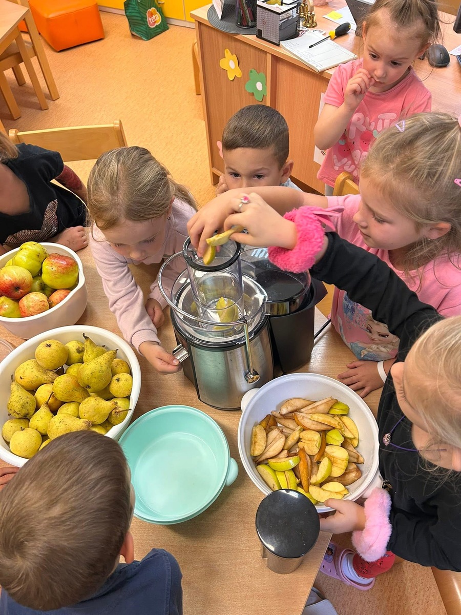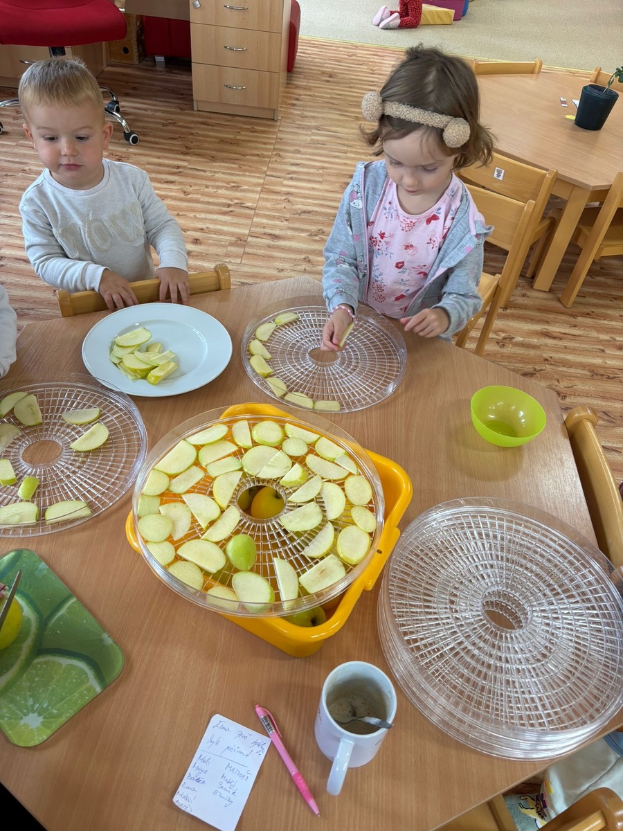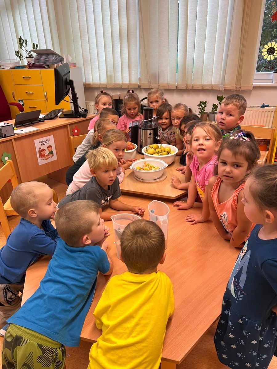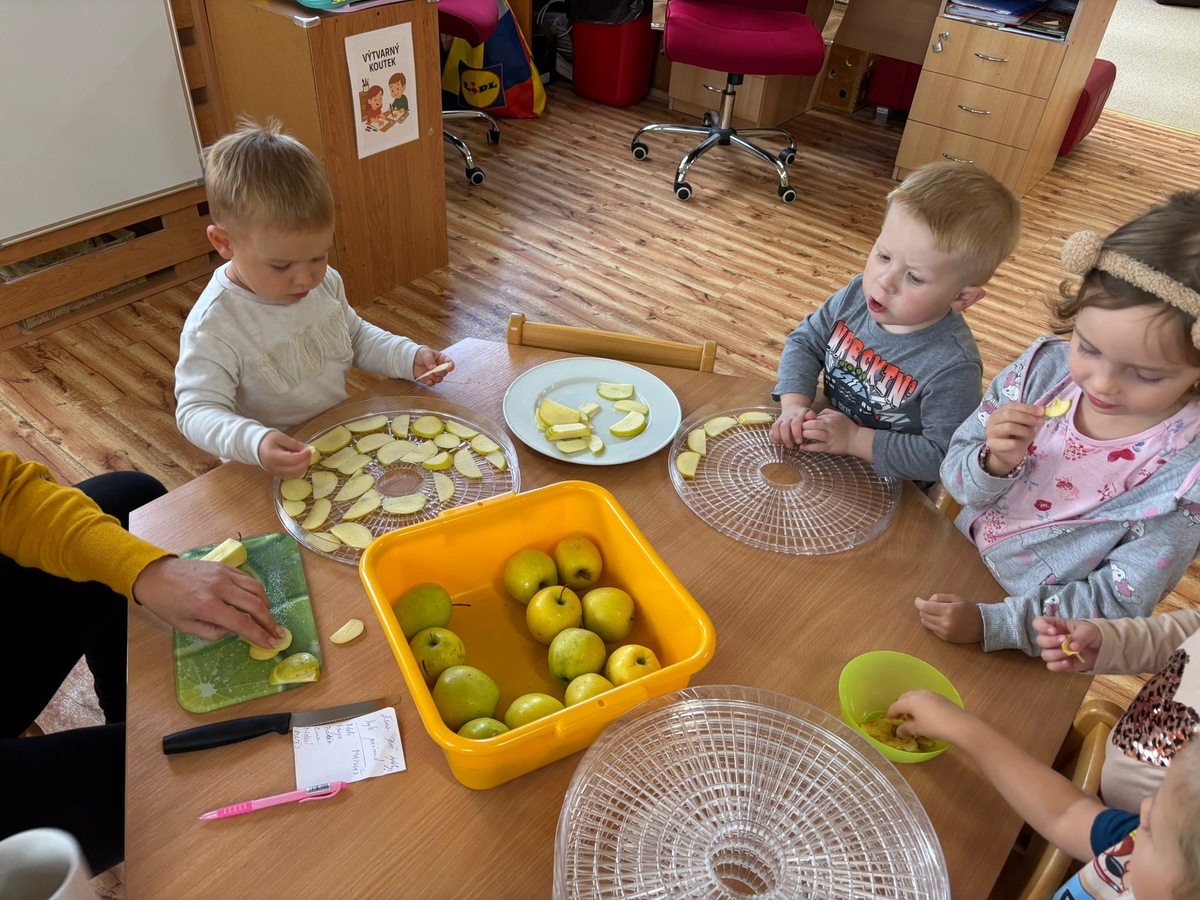MOC ĎĚKUJEME rodičům, kteří nám nosili své přebytky ovoce a zeleniny, ze svých zahrádek. Vše jsme zpracovali buď do svačinek nebo na marmeládu, usušili jsme křížaly, pekli ovocné koláče a odšťavnili mošt.