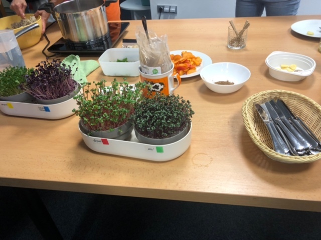 Druhý kurz pořádala společnost Plastia s.r.o., která má vedle svého výrobního programu mnoho dalších zajímavých počinů od vermikompostéru, který svým designem vůbec vermikompostér nepřipomíná a jeho autorem je známý architekt Jiří Pelcl, po krmítka a pítka pro ptáčky, misky na microgreens, samozavlažovací květináče atd. Kurz se věnoval fermentování obilovin, třeba pohanky a její další zpracování a prospěch pro náš střevní mikrobiom, dále využití microgreens a klíčků třeba na dochucení fermentováním zpracované quinoi. Dozvěděli jsme se spoustu užitečných rad o tom, jak jsou důležité udržovat střeva ve zdraví a že když se naučíme zpracovávat suroviny tak, aby náš střevní mikrobiom byl v pohodě, budeme šťastnější a zdravější☺