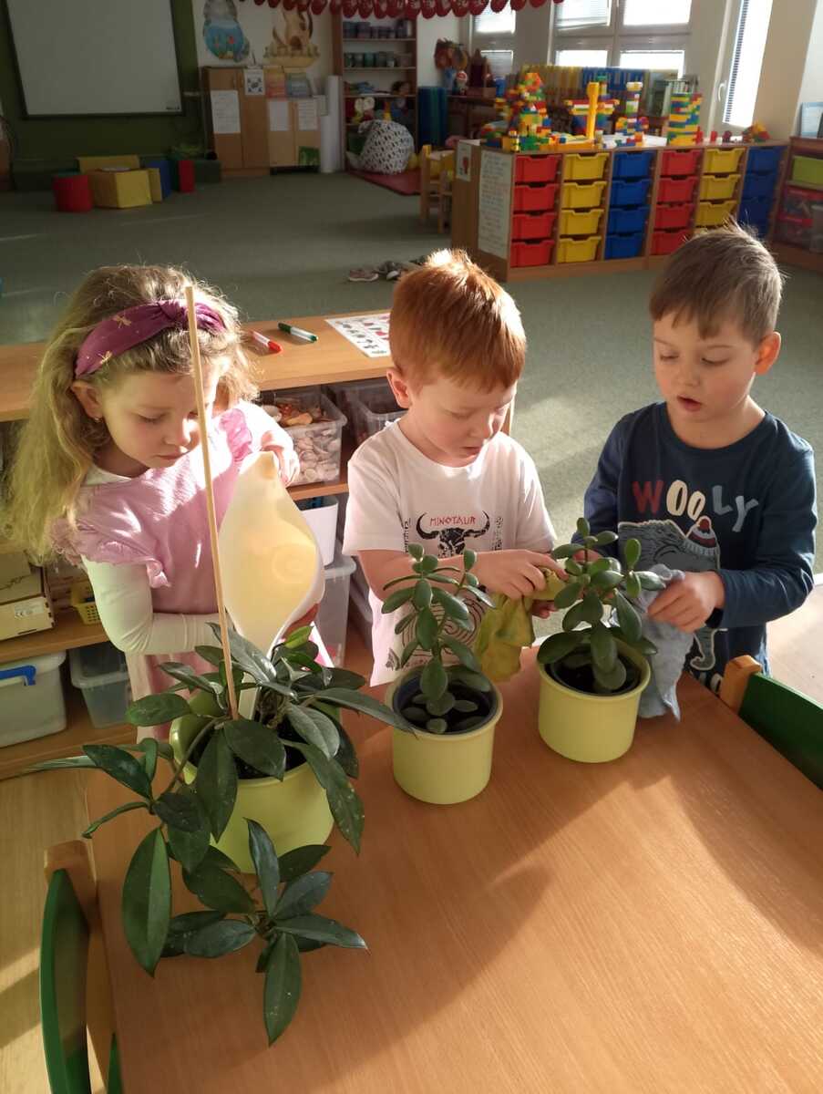 V zimě nám na zahrádce moc rostlinek neroste, tak se staráme alespoň o květiny ve třídě.