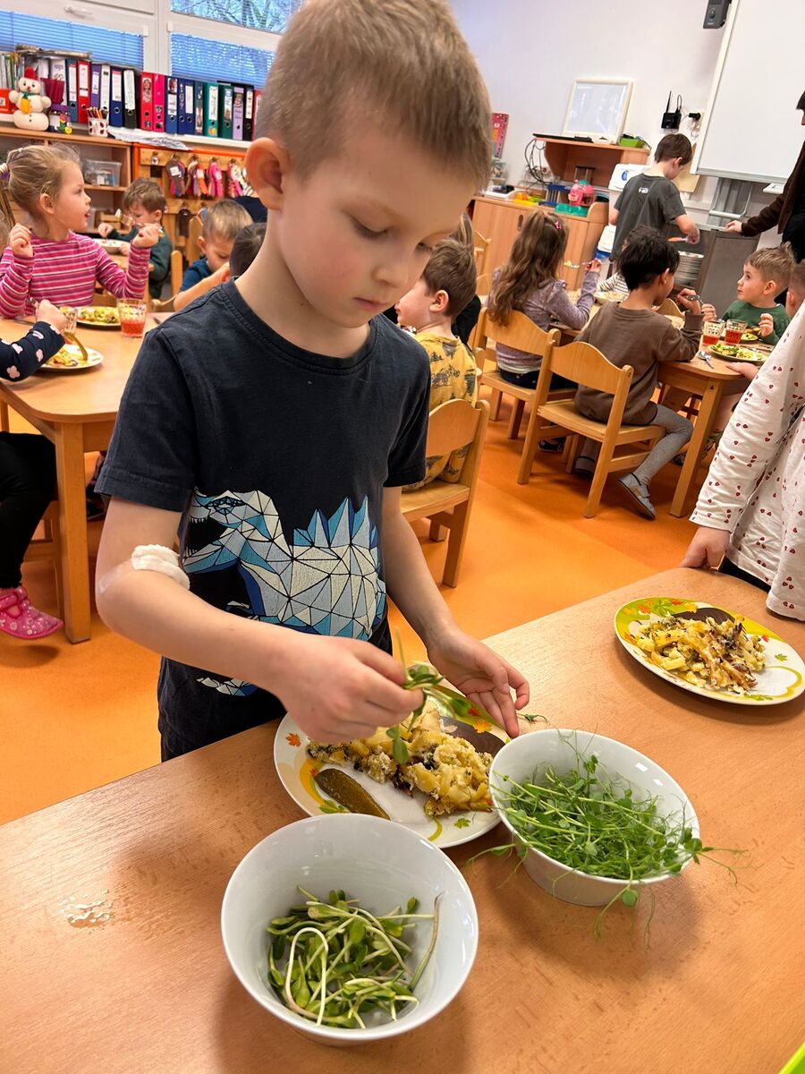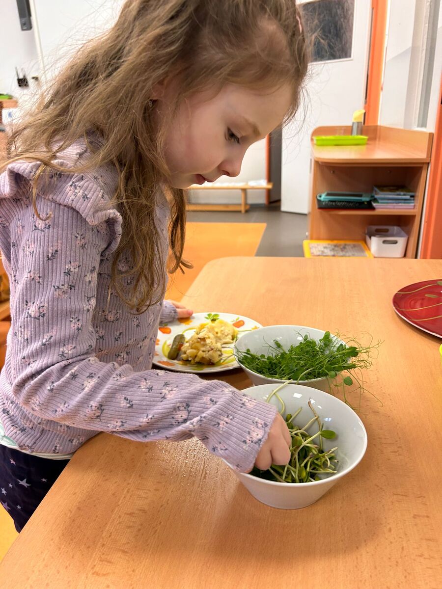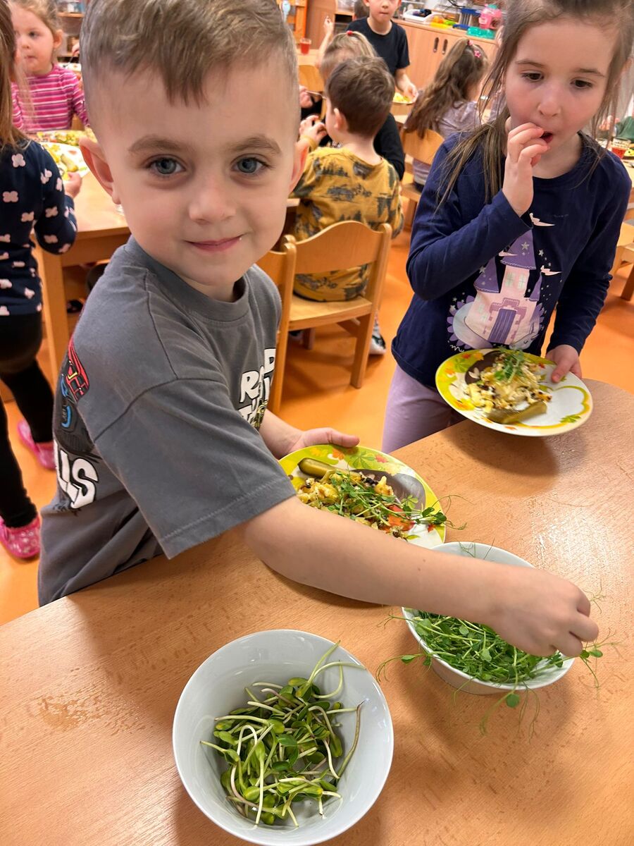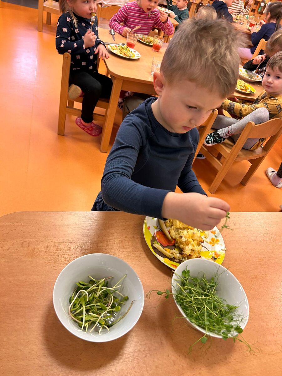 Samostatnost dětí začíná být poměrně často samozřejmostí. Vnímáme radost, když se dětem daří. Také u nás, ve školce Zahrádka, jsme našim malým strávníkům pořídili malé polévkové mísy - teriny. Děti se naučily nalít polévku, počkat až na ně dojde řada .... Další z možností nejen sebeobsluhy, ale hlavně získání praktických zkušeností z klíčení a microgreens je zapojit děti do celého procesu pěstování. A pak už jen nandat si na talíř a nechat si chutnat.