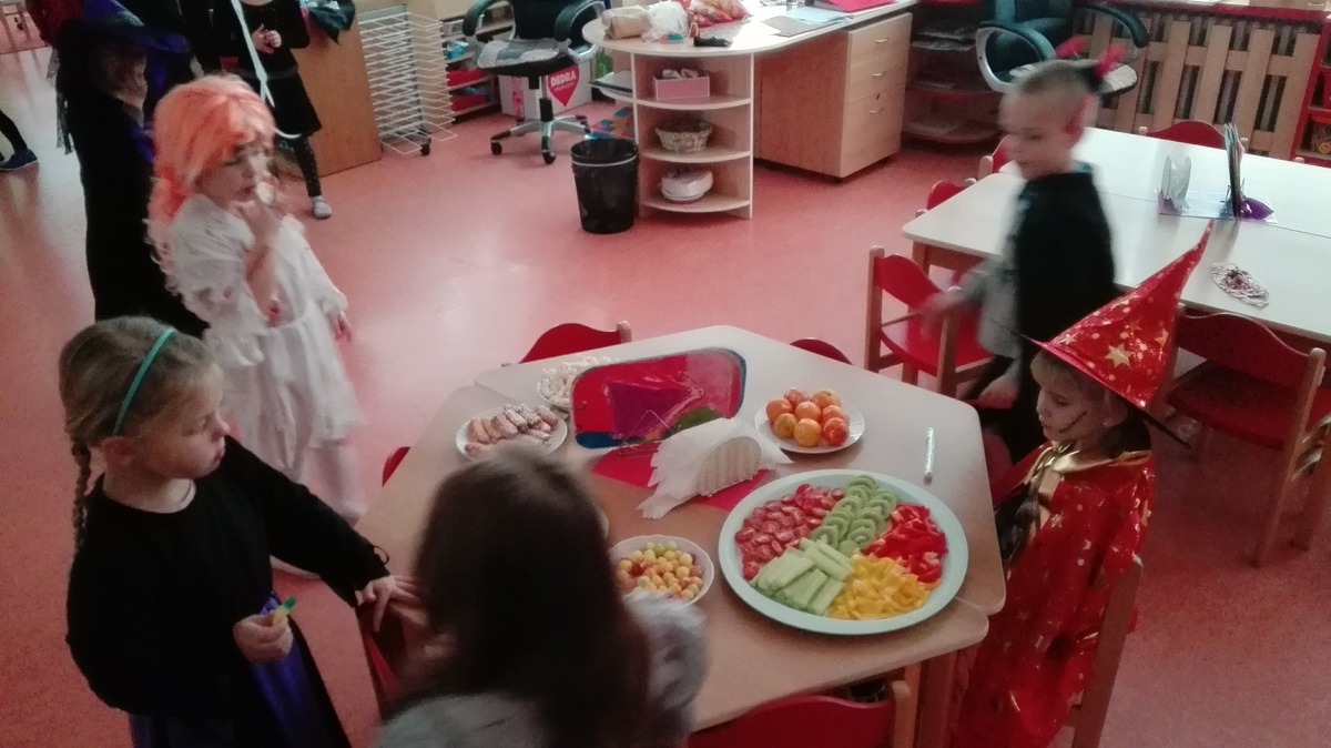 Ve čtvrtek 16.11. proběhel v naší skolce ve třídě Jeřabinky Strašidelný den, na který se děti dlouho těšily a vymýšlely nejen kostýmy, ale i občerstvení - aby bylo dobré, zdravé a aby bylo i pro naše dvě dět, které mají bezlepkovou dietu. Strašidelné kostýmy byly krásné, všechny děti přišly převlečené. Ale ta hostina...spoustu nakrájeného a nazdobeného ovoce a zeleniny, oříšky, sušené ovoce, napečené i bezlepkové cukroví. Maminky nám udělaly velikou radost, a dětem přichystaly perfektní strašidelnou hostinu. Děkujeme moc maminkách za spolupráci a za nové nápady! p.uč Kačka a Dáša