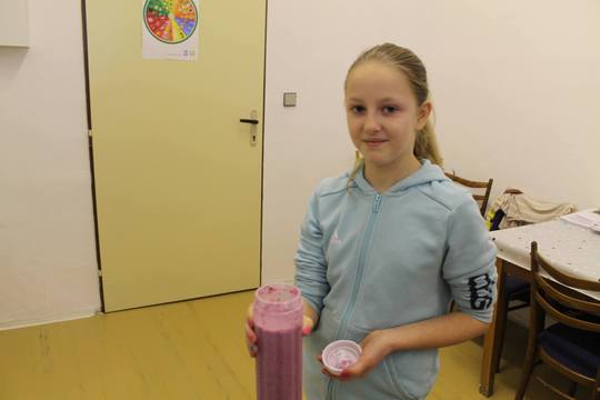 Do vaření a chystání svačinek zapojujeme celou školu. Tentokrát děti z 2. stupně připravují lahodné jednohubky z celeové pomazánky. Jako sladký zákusek máme chutné ovoce a koktejl z čerstvého ovoce.