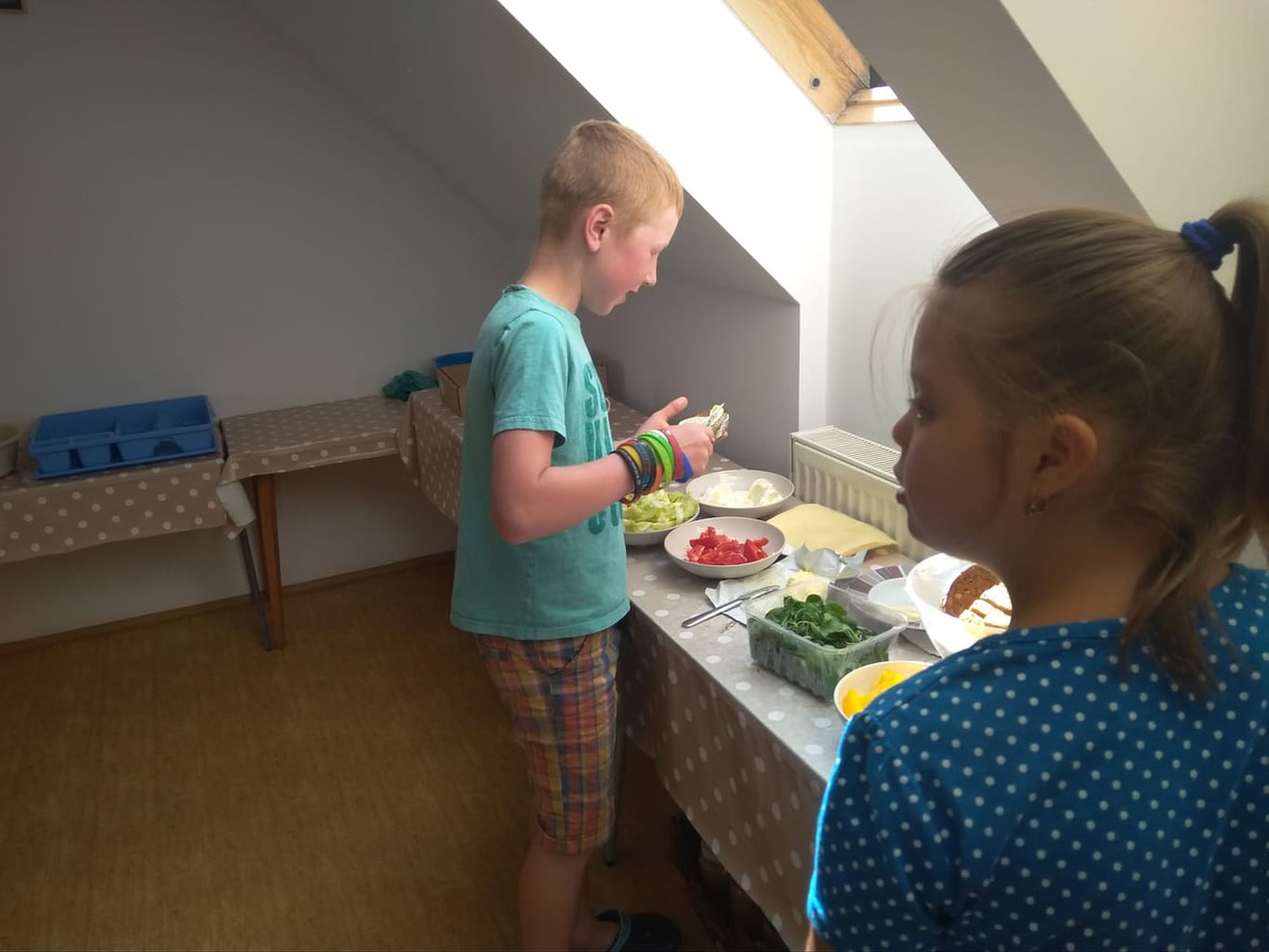 Snažíme se naučit děti, jak se zdravě stravovat. Společné svačinky vždy chutnají lépe :). Děti v montessori si chystají svačinky samy, každý den.