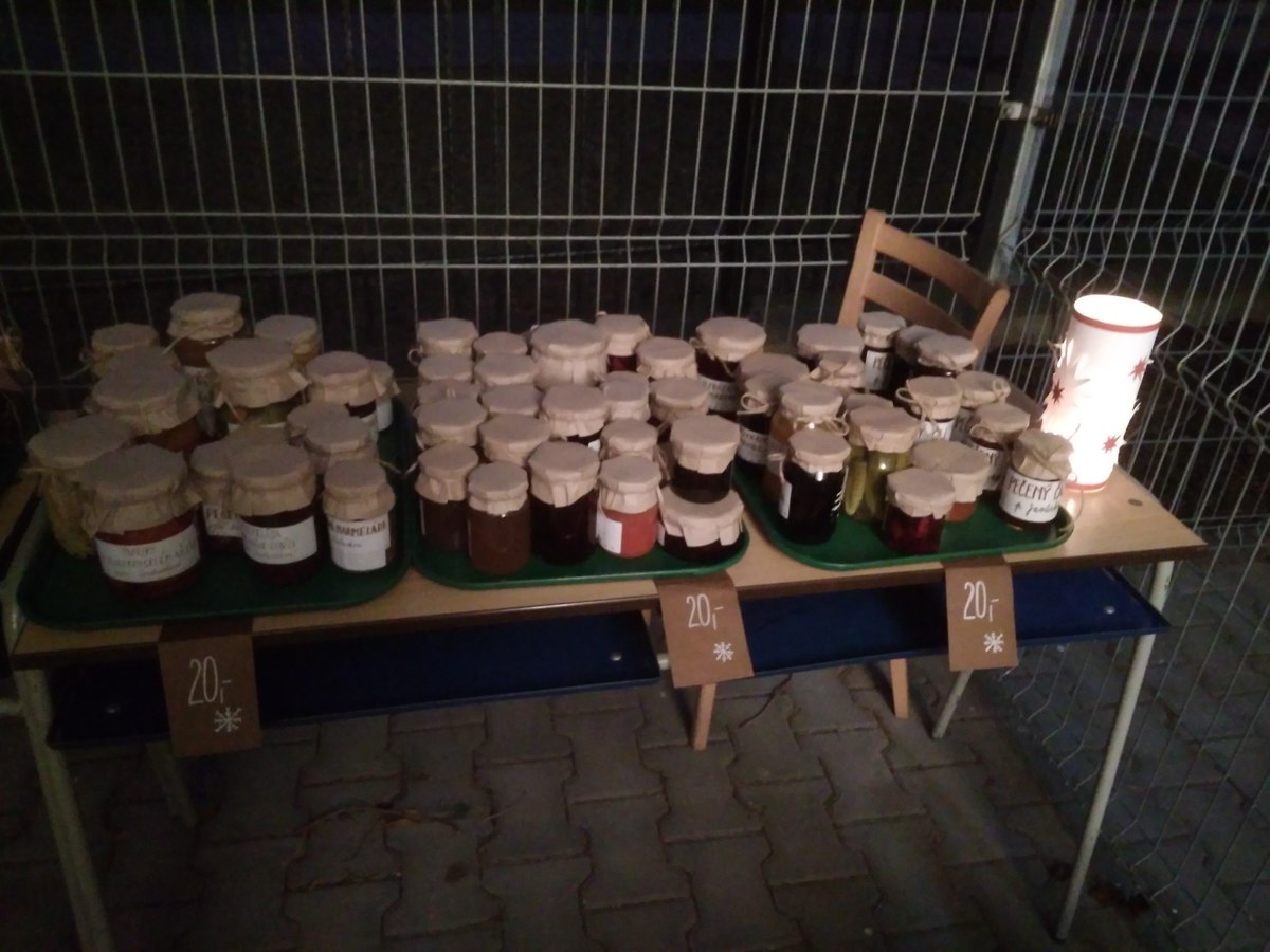 Tato akce byla pro všechny novinkou. Děti celý podzim připravovaly výrobky na prodej. V den D byly připraveny perníčky, marmelády, pečené čaje, sušené bylinky, křížaly, bylinkové sirupy, mýdla, svíčky, vonné koupelové koule a mnoho a mnoho dalších výrobků. Po úvodní dětské besídce se všichni přítomní vydali na nákupy a pro občerstvení, které si pro ně připravily paní učitelky. Plápolající ohně a barevná světýlka podtrhovala kouzelnou a klidnou atmosféru, které zde panovala. Všichni jsme byli spokojeni, ale nejvíc děti.