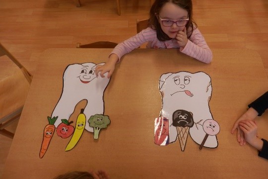 Seznámení se s českými tradicemi – bramborové placky, pečení svatomartinských rohlíků; hry s obrázky – hledání, přiřazování, pojmenování obrázků zdravá x nezdravá strava; draní peří; „kování“ alobalových podkov,..
