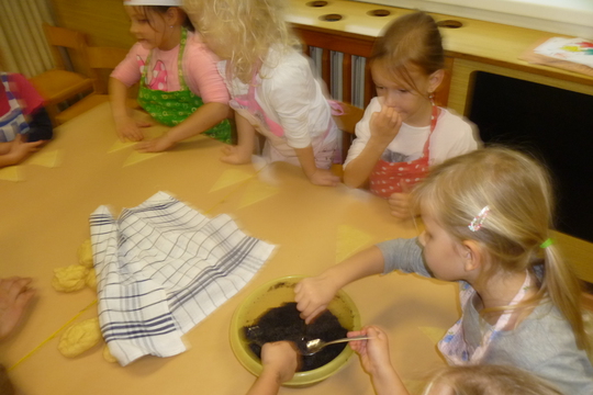 Tak jako každý rok, očekáváme Martina na bílem koni. A k tomu patří pečení Martinských rohlíčků. Děti se převlékly za pekaře,vyválí těsto, naplní mákem a udělají rohlíček. Samozřejmě i pro své blízké, aby se podělily, jako Svatý Martin.