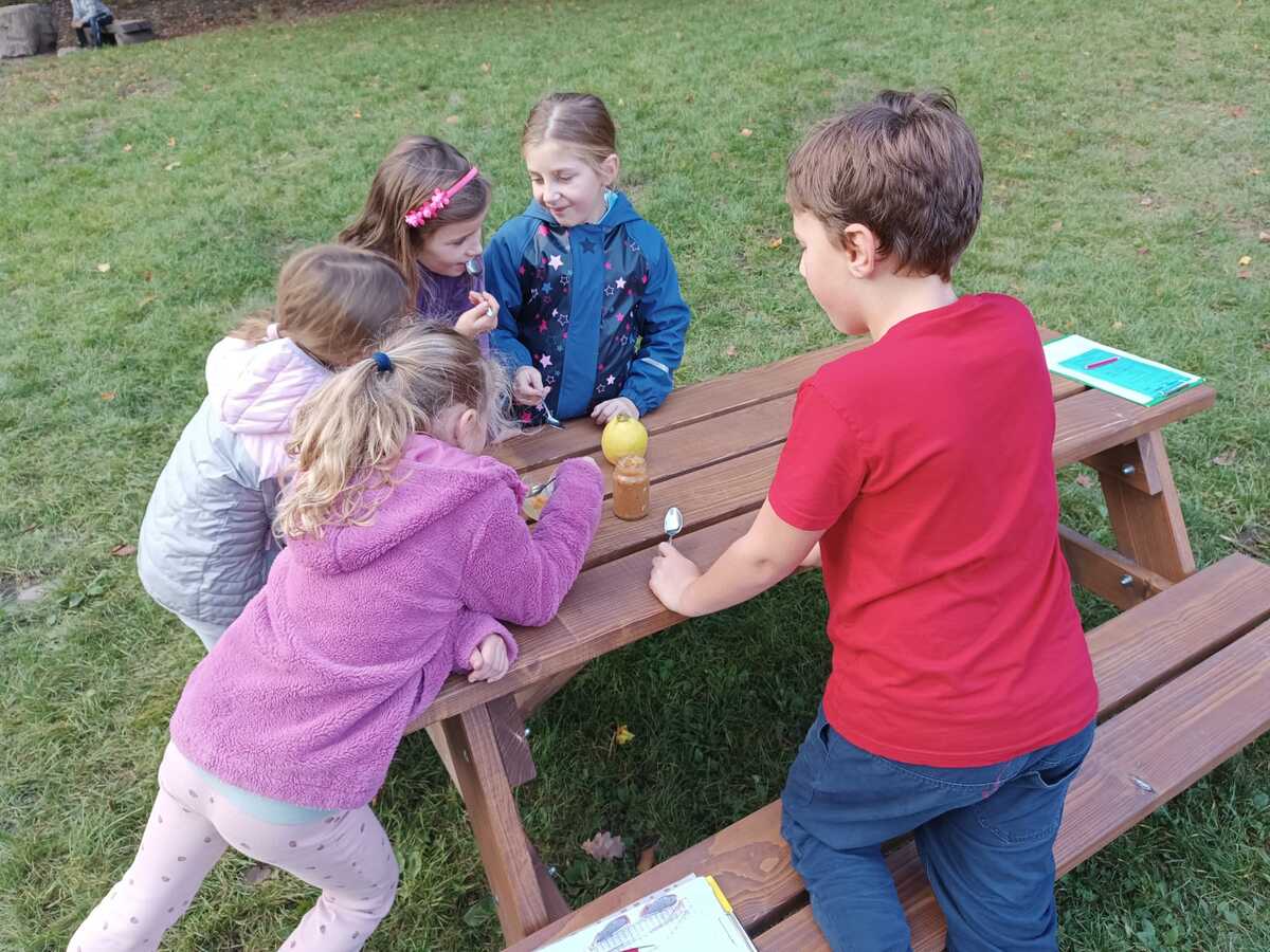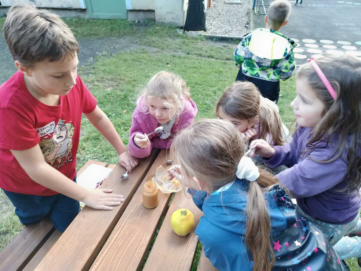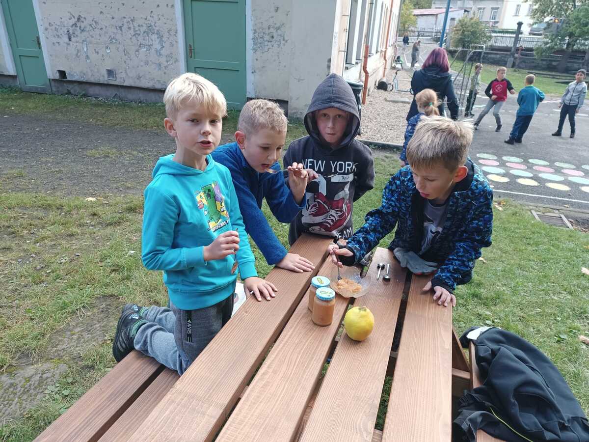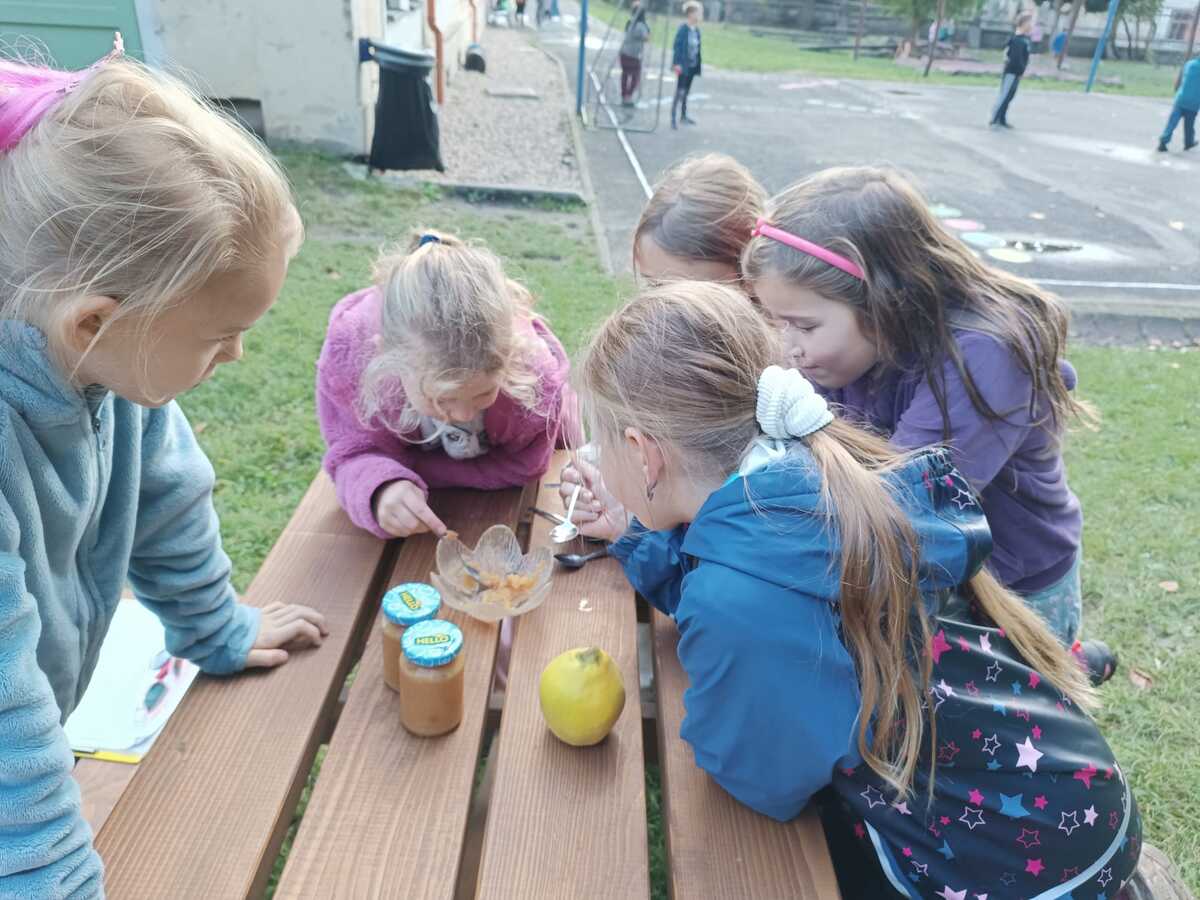 V rámci Světového dne jídla, který připadá na 16. října, čekala na děti ze školní družiny ochutnávka medu od našich včeliček a přesnídávky z kdoulí, které si samy připravily.