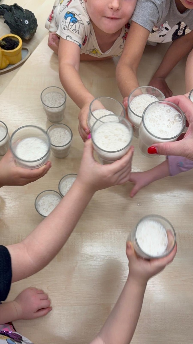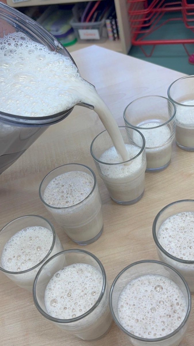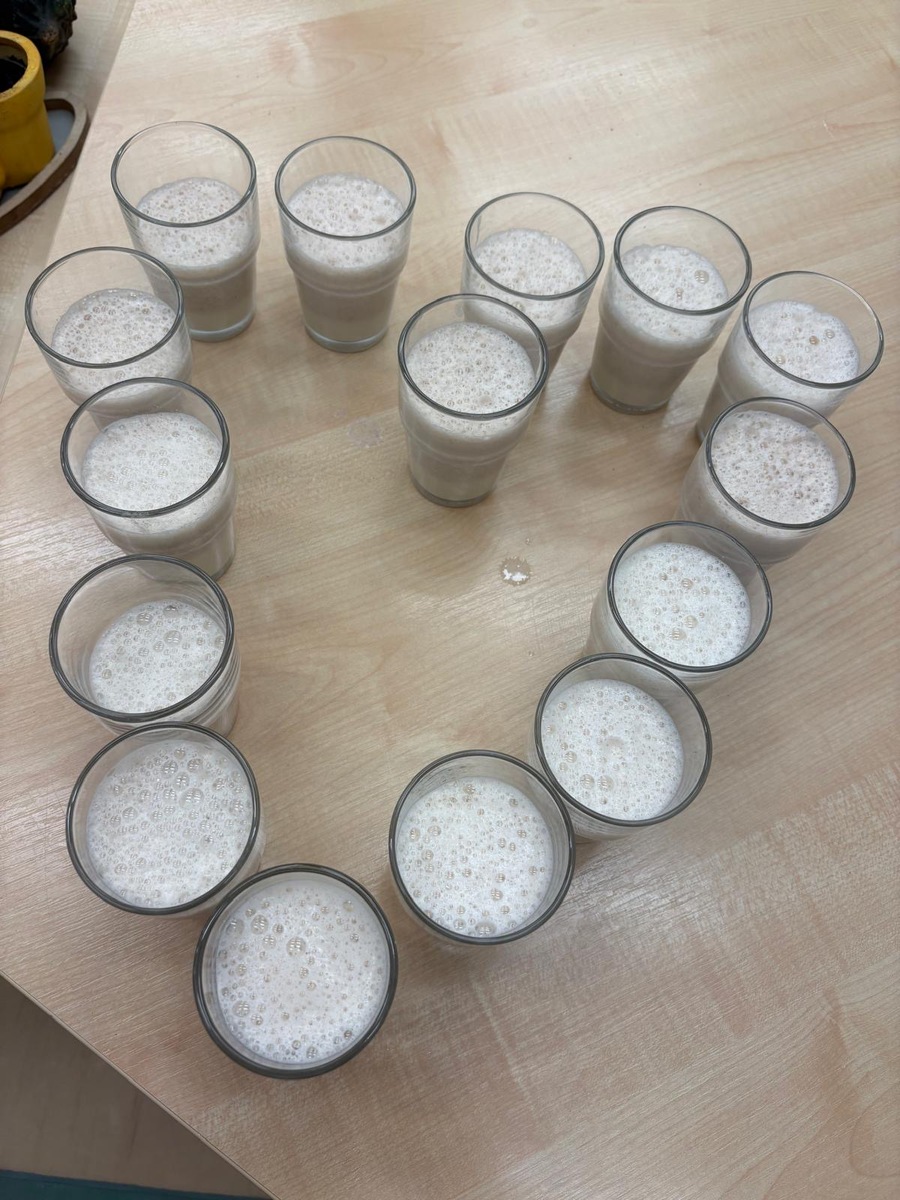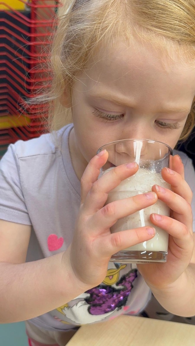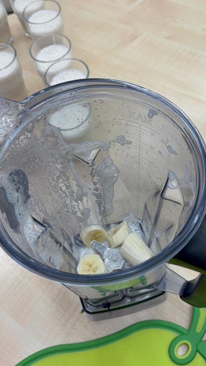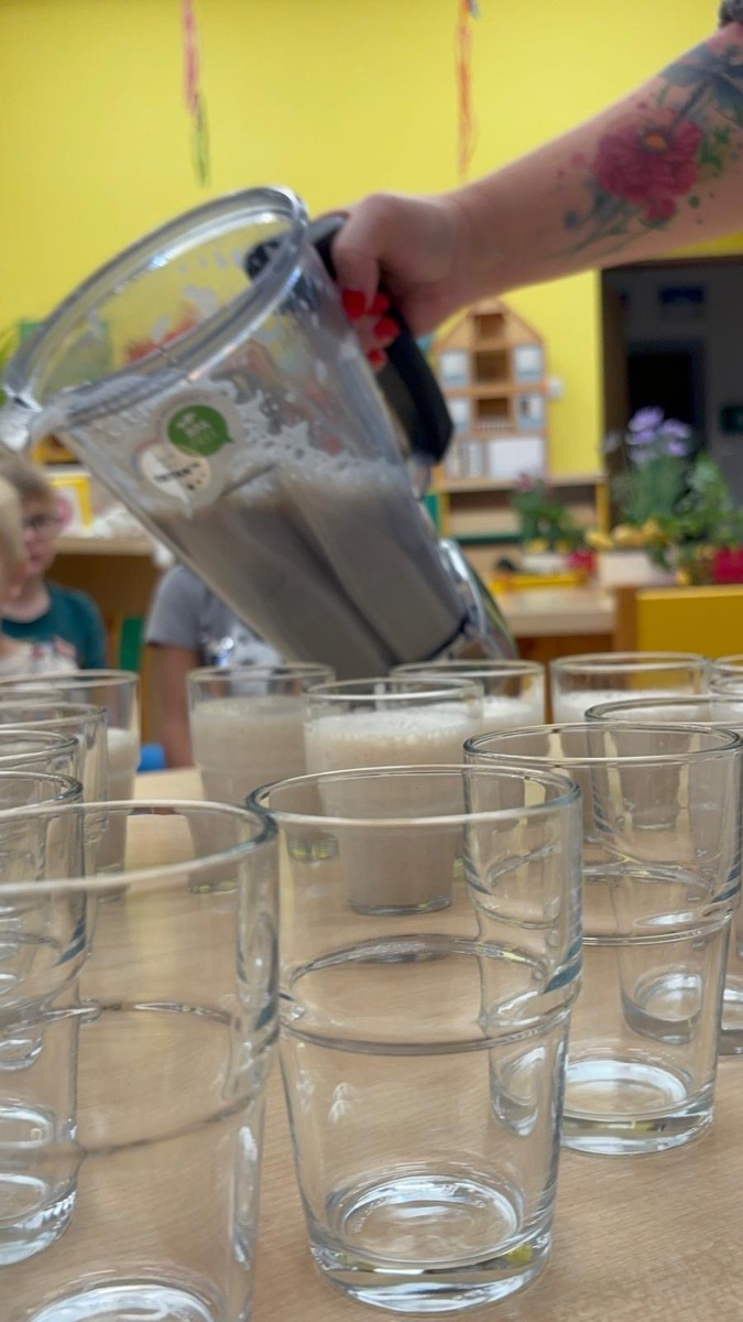 Děti si dnes připomněly světový den medu a med použily pro vytvoření banánovo- medový koktejl pro přátelský přípitek s kamarády ze Znojma. Po společné domluvě si posíláme navzájem sladký medový pozdrav.