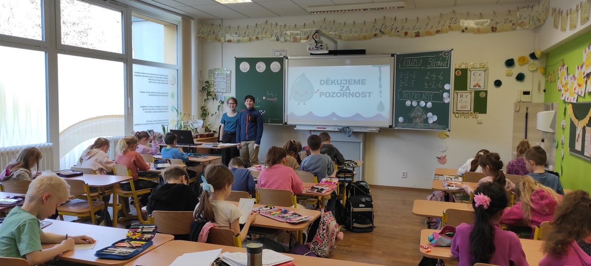 U příležitosti Světového dne vody se náš školní Ekotým rozhodl zapojit do osvěty. Pro své mladší spolužáky si členové týmu připravili poutavý vzdělávací program, během kterého hravou formou vysvětlili význam vody pro naši planetu i důležitost jejího šetření. Kromě přednášek a aktivit ve třídách se Ekotým postaral také o výzdobu společných prostor. V hale školy nyní najdete tématickou nástěnku, která nabízí zajímavá fakta.Děkujeme Ekotýmu za skvělou iniciativu a všem žákům za jejich zájem o životní prostředí!