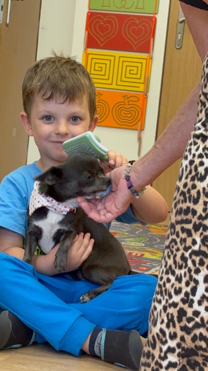 VOLÍME VHODNÉ TERAPIE - canisterapie V úterý nás navštívila paní Alenka se svojí Lucinkou. Pro děti si připravila spoustu aktivit, které děti nejen baví, ale pomáhají k relaxaci i terapii.