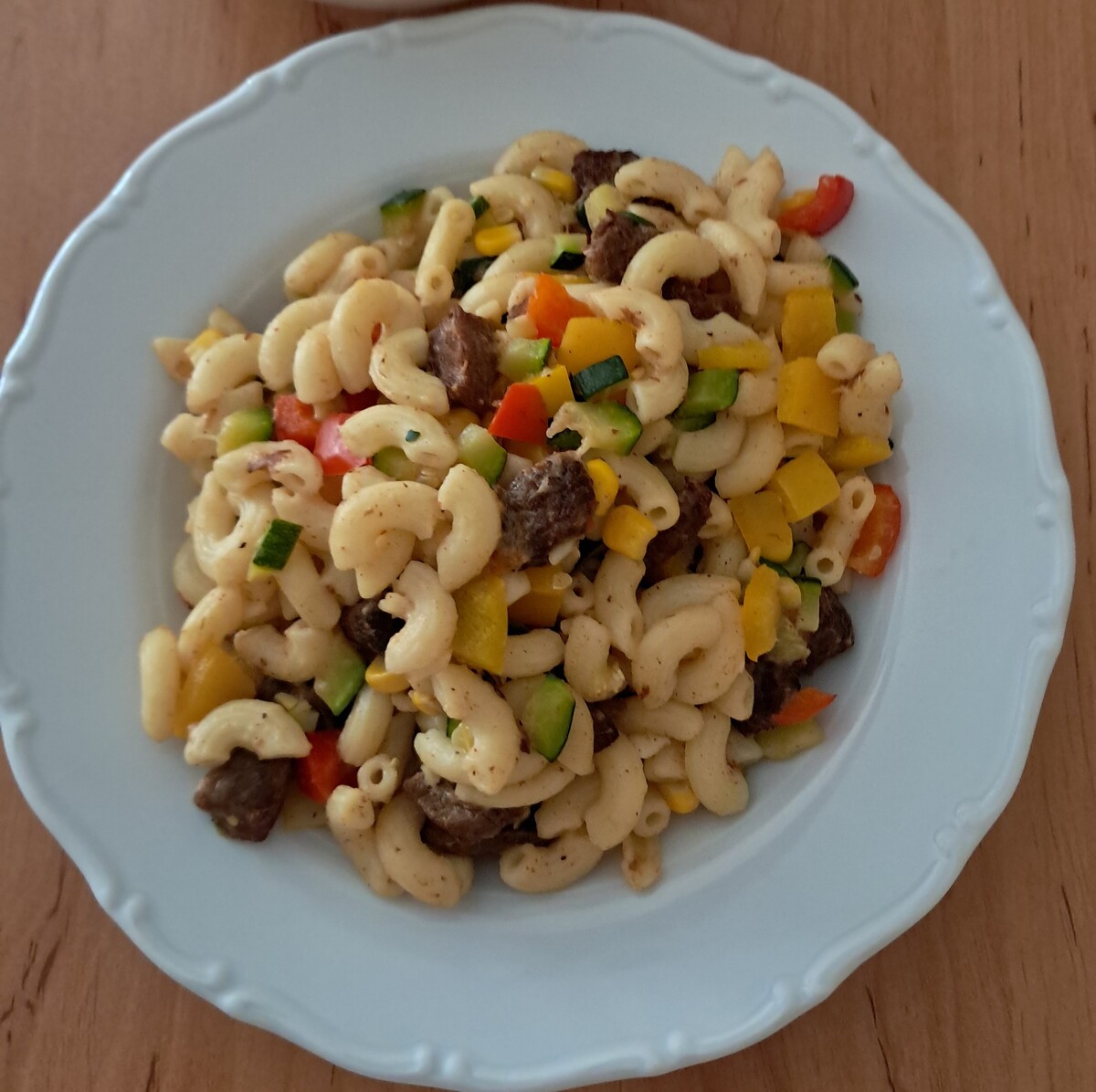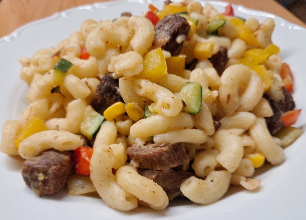 Těstoviny s hovězím masem a zeleninou