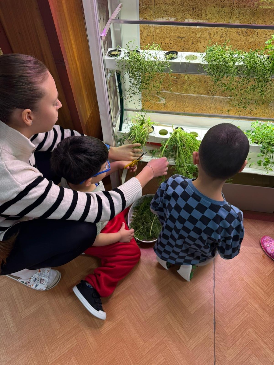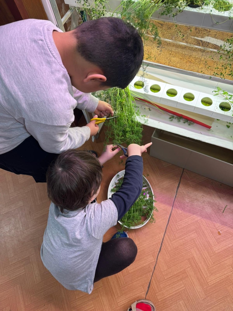 Veverky a hydroponická zahrádka Na podzim děti ze třídy Veverek zasadily různá semínka bylin a zeleniny. Následující týdny sledovaly, jak rostlinky bez hlíny, pouze s vodou a živinami, postupně klíčí, rostou a sílí. Naučily se, co rostliny potřebují k životu, a pravidelně se o svou malou zahrádku staraly. Když bylinky, zejména kopr, dostatečně vyrostly, děti si vyzkoušely jeho sklizeň. S nadšením pozorovaly, jak se jejich práce proměnila ve skutečné suroviny do kuchyně. Nasbíraný kopr poté předaly paní kuchařce, která z něj uvařila voňavou koprovou omáčku. Tyto aktivity dětem ukazují cestu „od semínka až na talíř“ a přirozenou formou je vedou k zájmu o přírodu, zdravé stravování i spolupráci. Pro všechny to byl krásný a chutný zážitek.