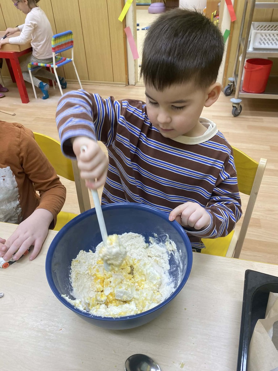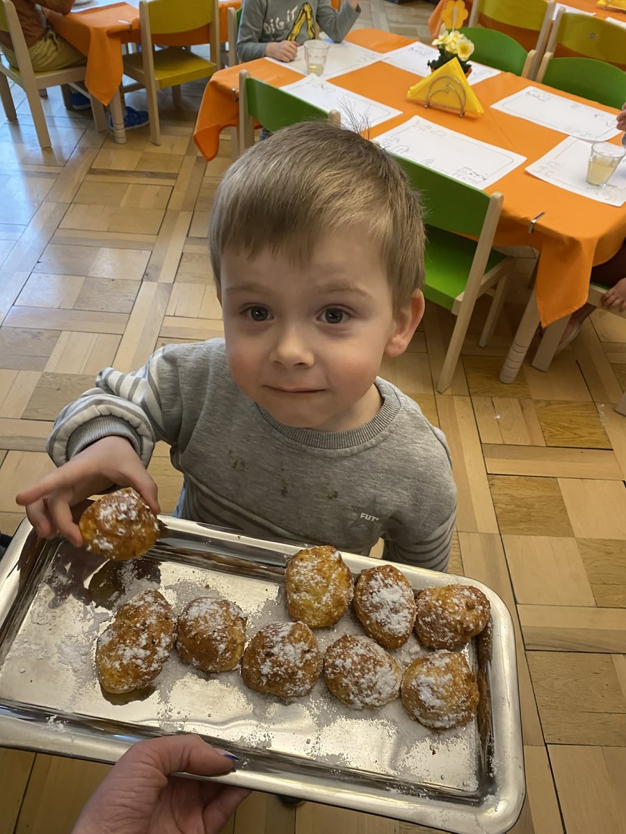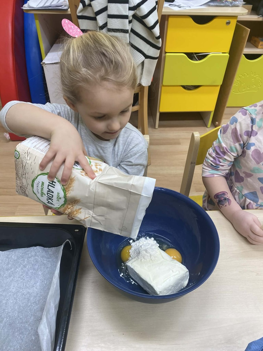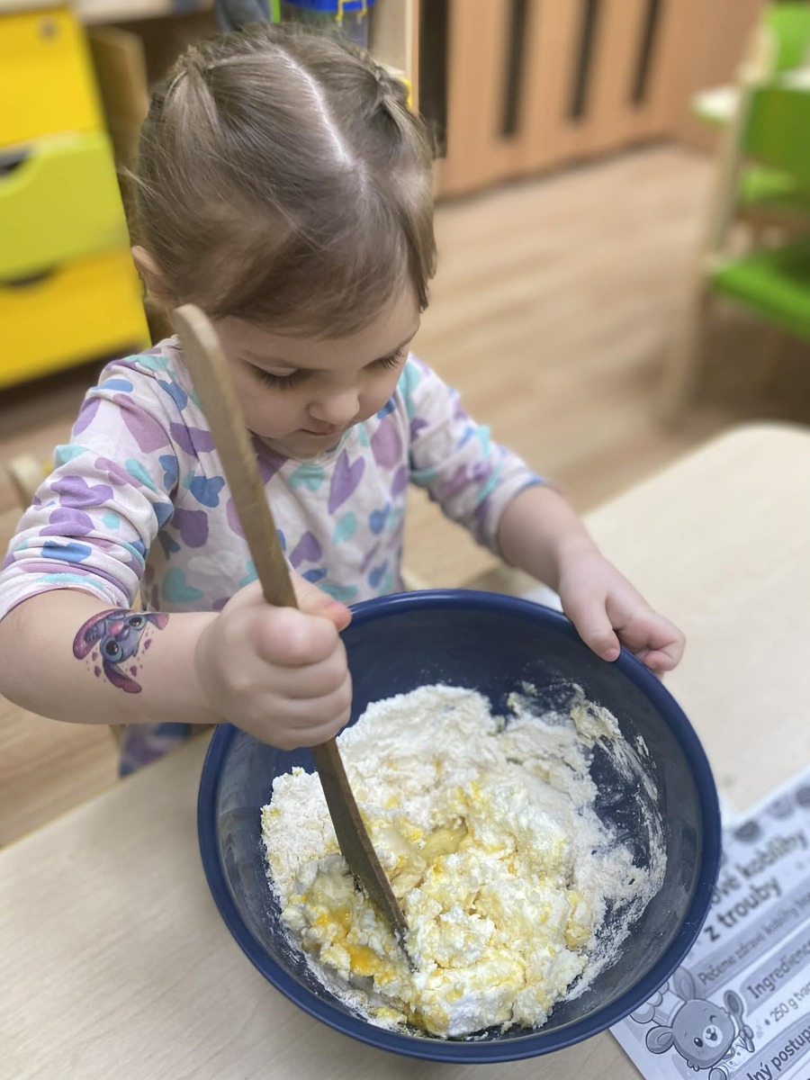Dnes si Berušky ve školce vyzkoušely pečení masopustních koblížků, tak trochu jinak. Místo smažení zvolily troubu a do těsta přidaly tvaroh, díky kterému byly koblížky krásně vláčné. Děti se staly opravdovými pekaři – s nadšením odměřovaly suroviny, míchaly těsto a vlastníma rukama tvarovaly bochánky. Byla radost sledovat, jak je práce baví a jak se těší, až se plechy vytáhnou z trouby. Společná ochutnávka byla krásnou tečkou za povedeným dopolednem plným spolupráce a radosti. Vlastnoručně vyrobená dobrota totiž chutná nejlépe!