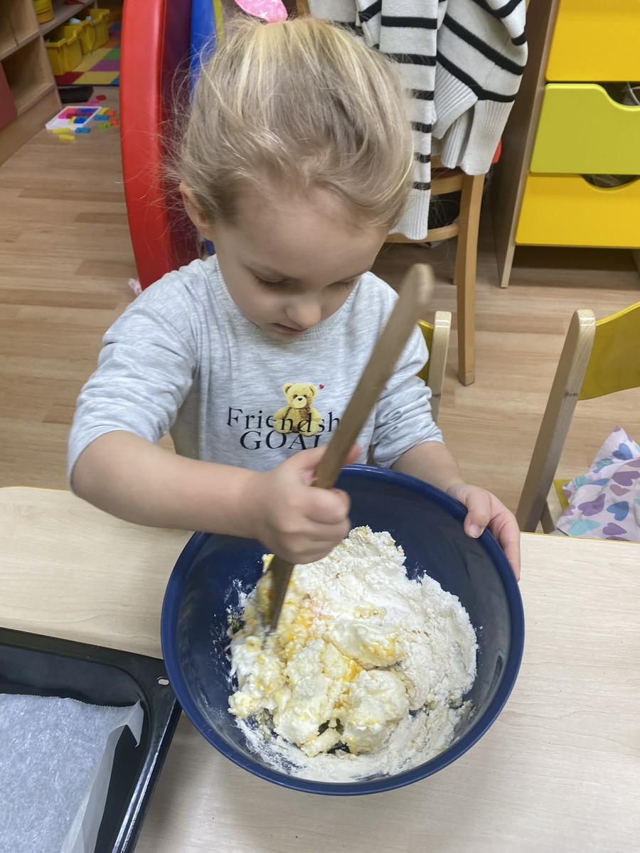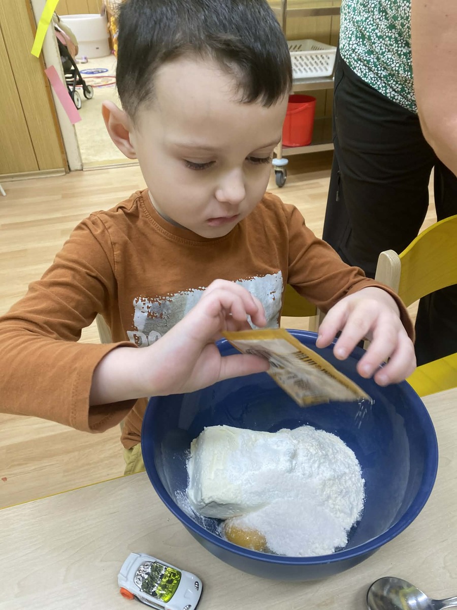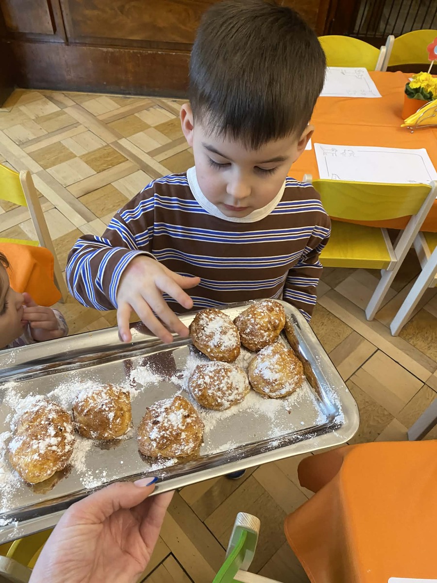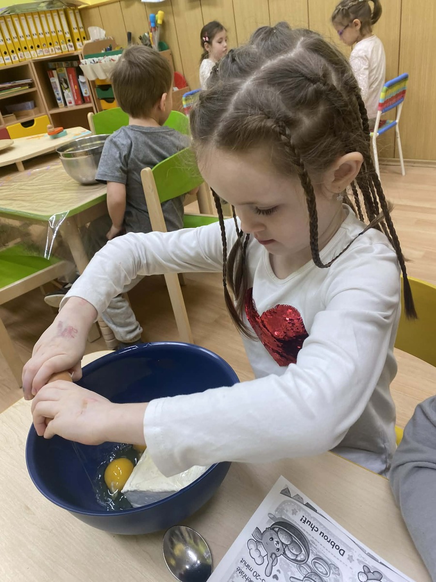 Dnes si Berušky ve školce vyzkoušely pečení masopustních koblížků, tak trochu jinak. Místo smažení zvolily troubu a do těsta přidaly tvaroh, díky kterému byly koblížky krásně vláčné. Děti se staly opravdovými pekaři – s nadšením odměřovaly suroviny, míchaly těsto a vlastníma rukama tvarovaly bochánky. Byla radost sledovat, jak je práce baví a jak se těší, až se plechy vytáhnou z trouby. Společná ochutnávka byla krásnou tečkou za povedeným dopolednem plným spolupráce a radosti. Vlastnoručně vyrobená dobrota totiž chutná nejlépe!