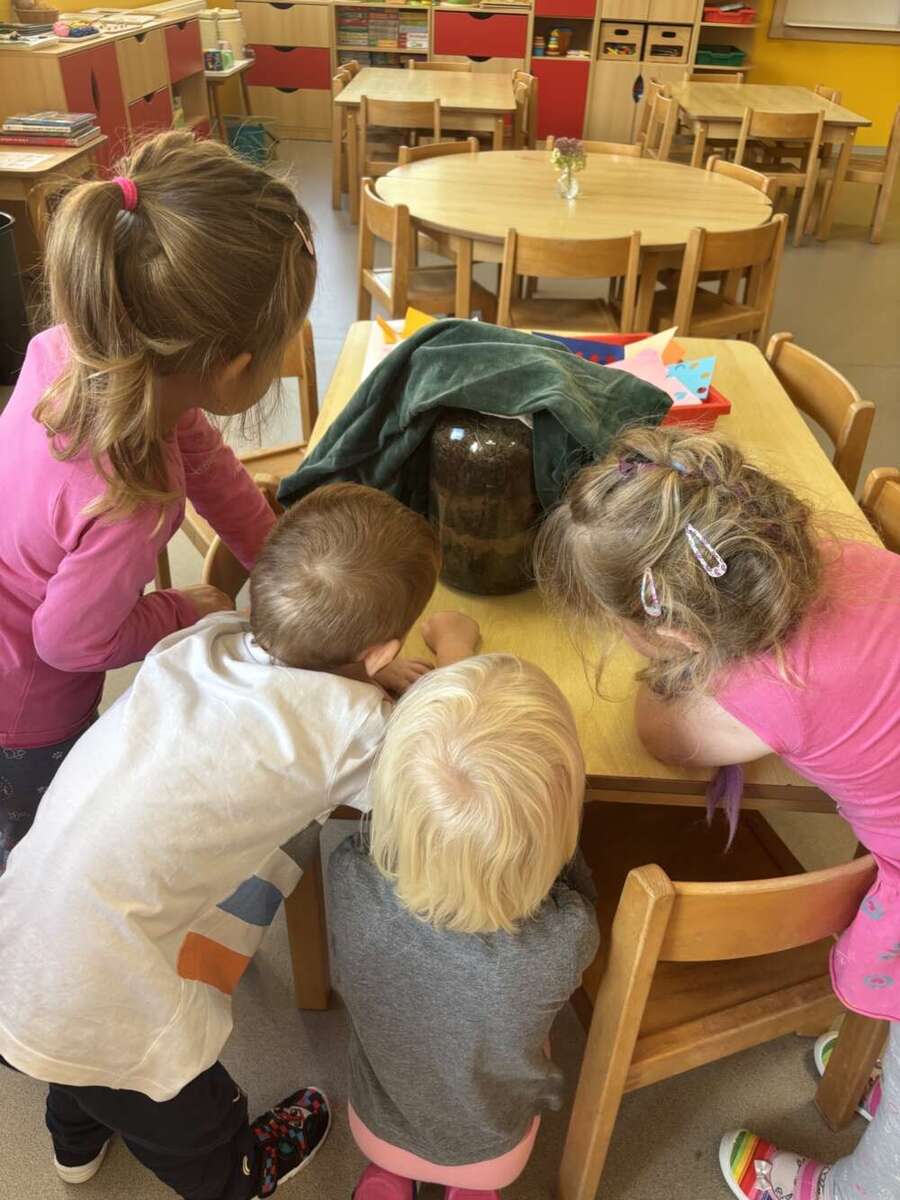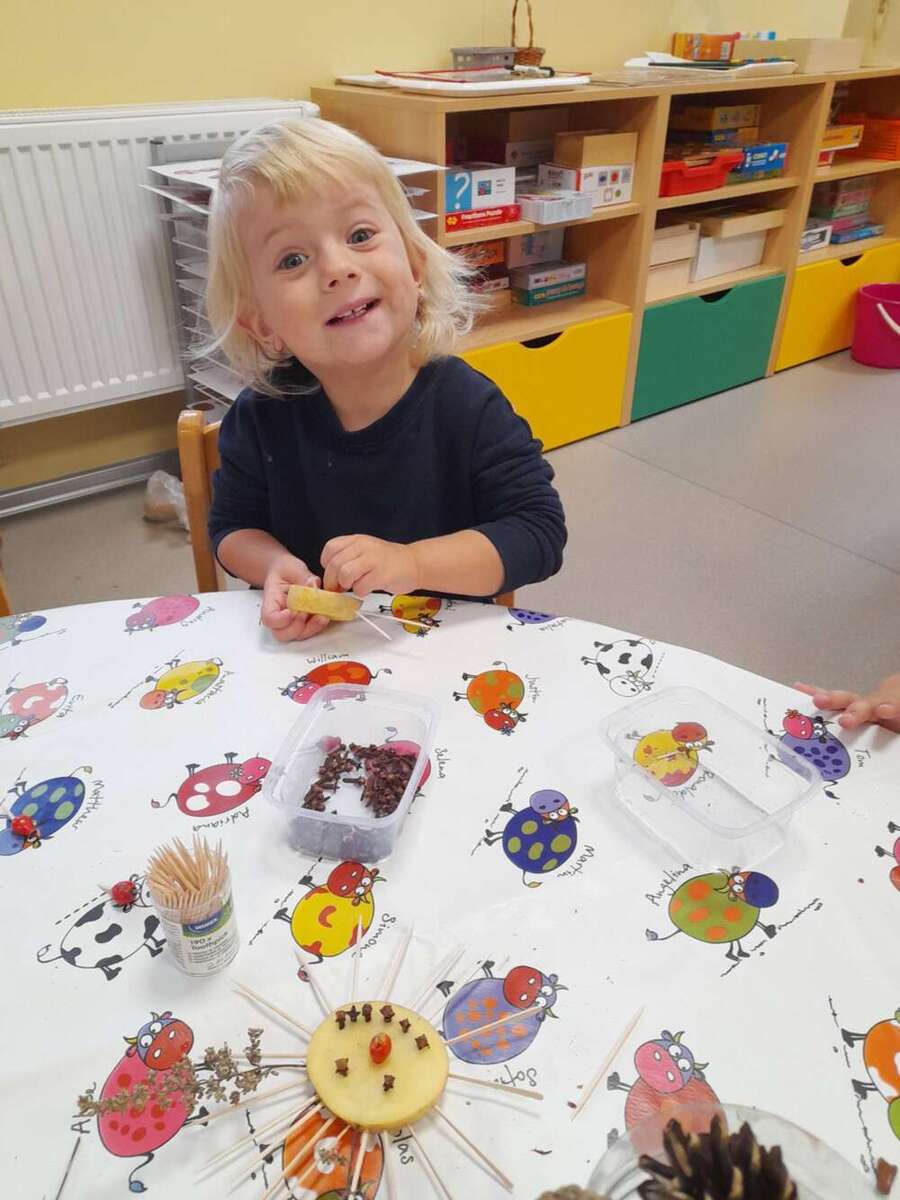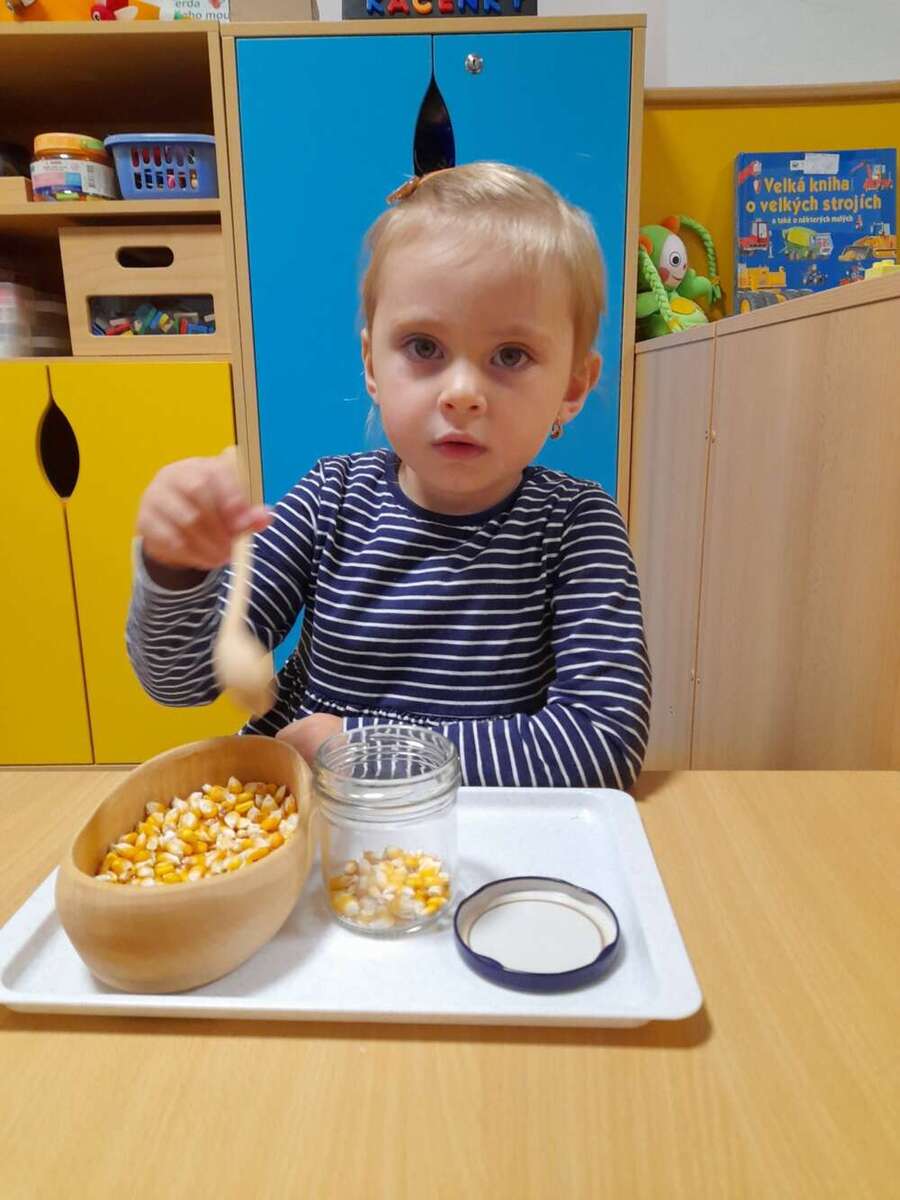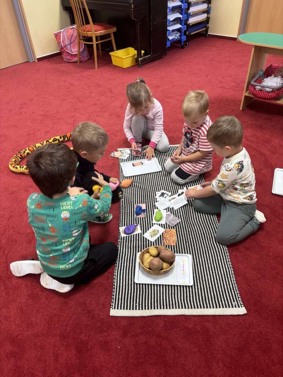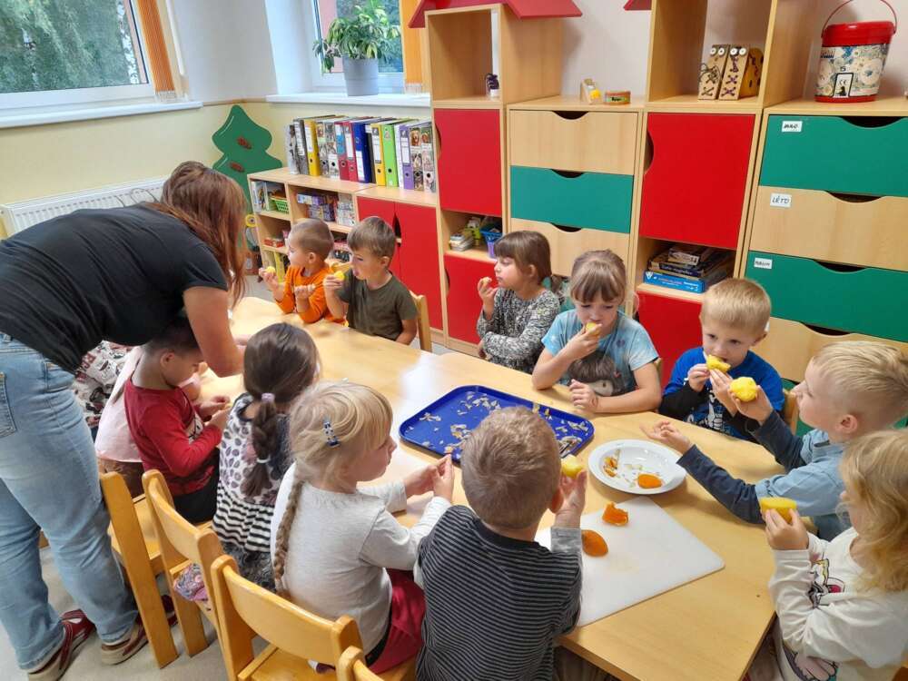 Povídali jsme si o tom, co vše se dá na poli vypěstovat, zkusili jsme si vyrobit bramborové sluníčko, počítali, třídili, rovnali, kreslili, myli brambory. Nechyběly ani traktory a "žížalovník" . Nakonec nám paní kuchařka brambory uvařila a my si je mohli oloupat, nakrájet a sníst.