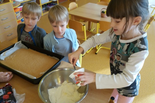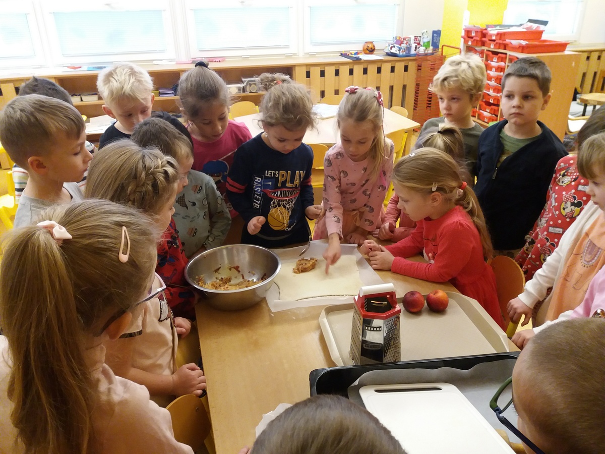 Třída Včeličky si tento týden povídala o zdraví, bacilech, jak je důležité jíst hodně ovoce, nejen, když nás nemoc zastihne. Proto si děti vyzkoušely ochutnat ovoce v různém podání. Jablíčko zralé, nijak nezpracované, pak upečené v troubě, v podání výborného štrůdlu a nakonec v sušené podobě. Děti si i vyzkoušely, jak je jednoduché si udělat koláč a použít při tom jen ovoce, které v létě mohly sbírat na zahrádce nebo v lese. Naše děti se snažíme vést nejen ke zdravé stravě, ale i ke sportu. V měsíci září a říjnu tato třída chodila jednou týdne v dopoledních hodinách na tenis. Od listopadu do prosince již chodí 2 krát týdne.