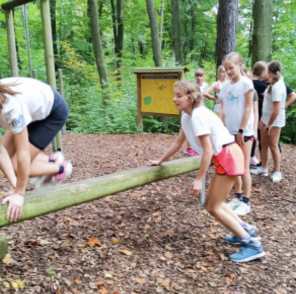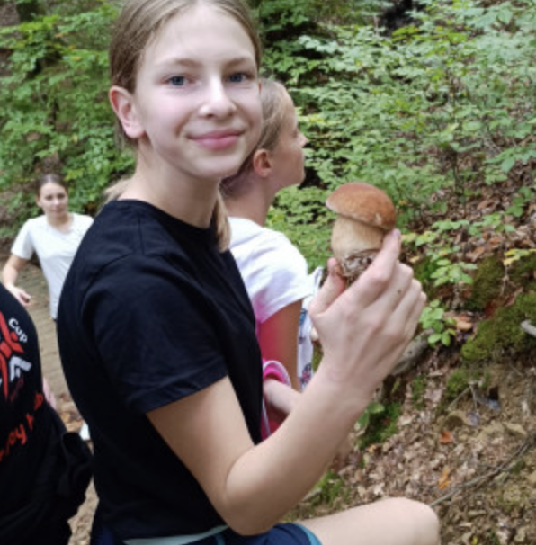 S děvčaty z 6.B jsme byly 3 kilometry v lese a kromě běhu a cvičení na Stezce zdraví došlo i na sbírání praváků a bedel : )