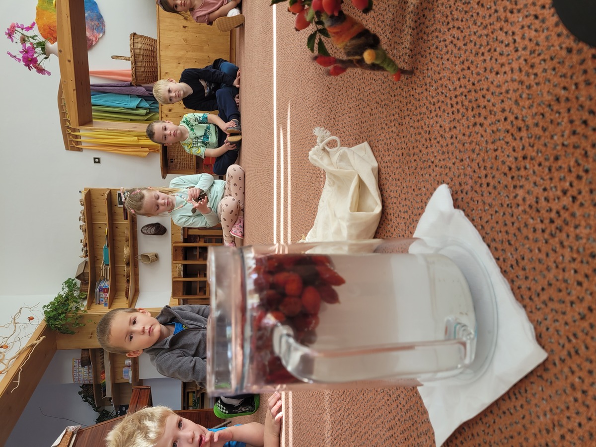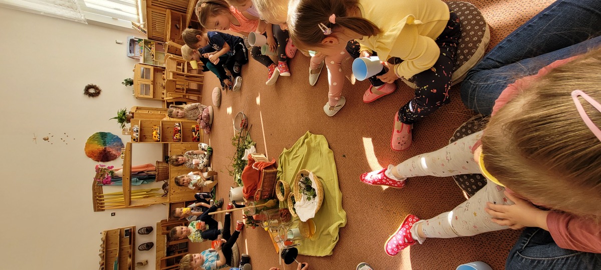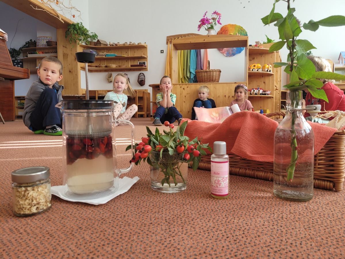 Jak voní bylinky si u nás mohou děti vyzkoušet téměř po celý rok. Část bylinek si pěstujeme na naší zahrádce a pro část vyrážíme do lesa a na louky. Děti u nás učíme bylinky pozvávat, ale znát i jejich využití. Vaříme si bylinkové čaje, vyrábíme léčivé sirupy a tinktury, sušíme. Vůně bylinek je cítit po celé školce.