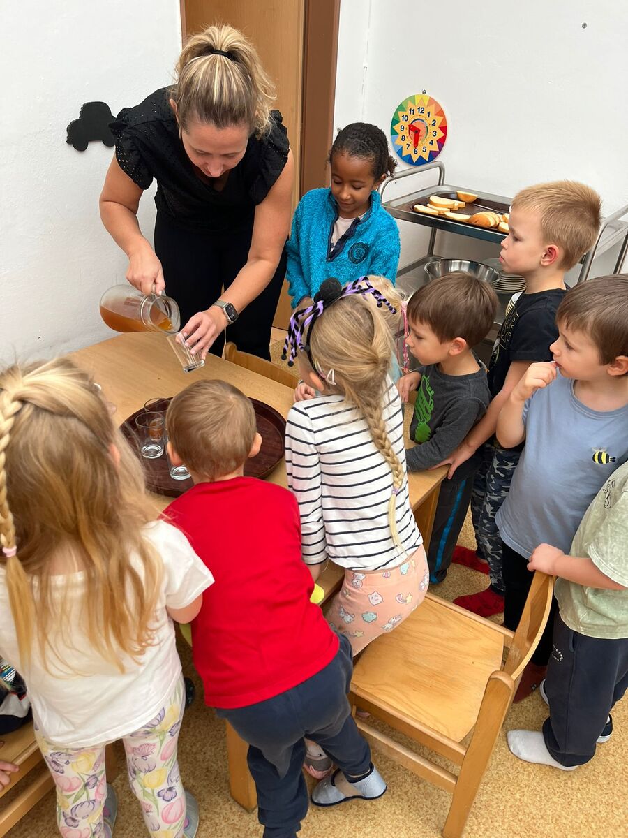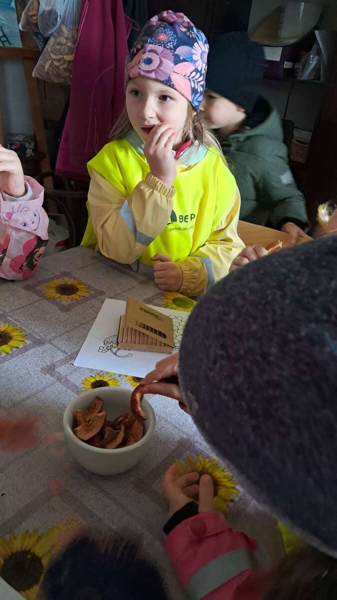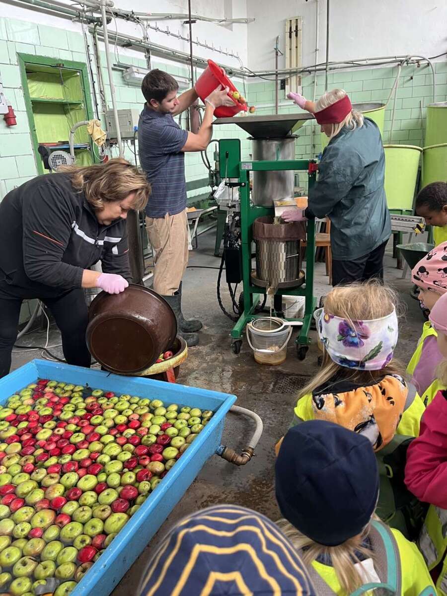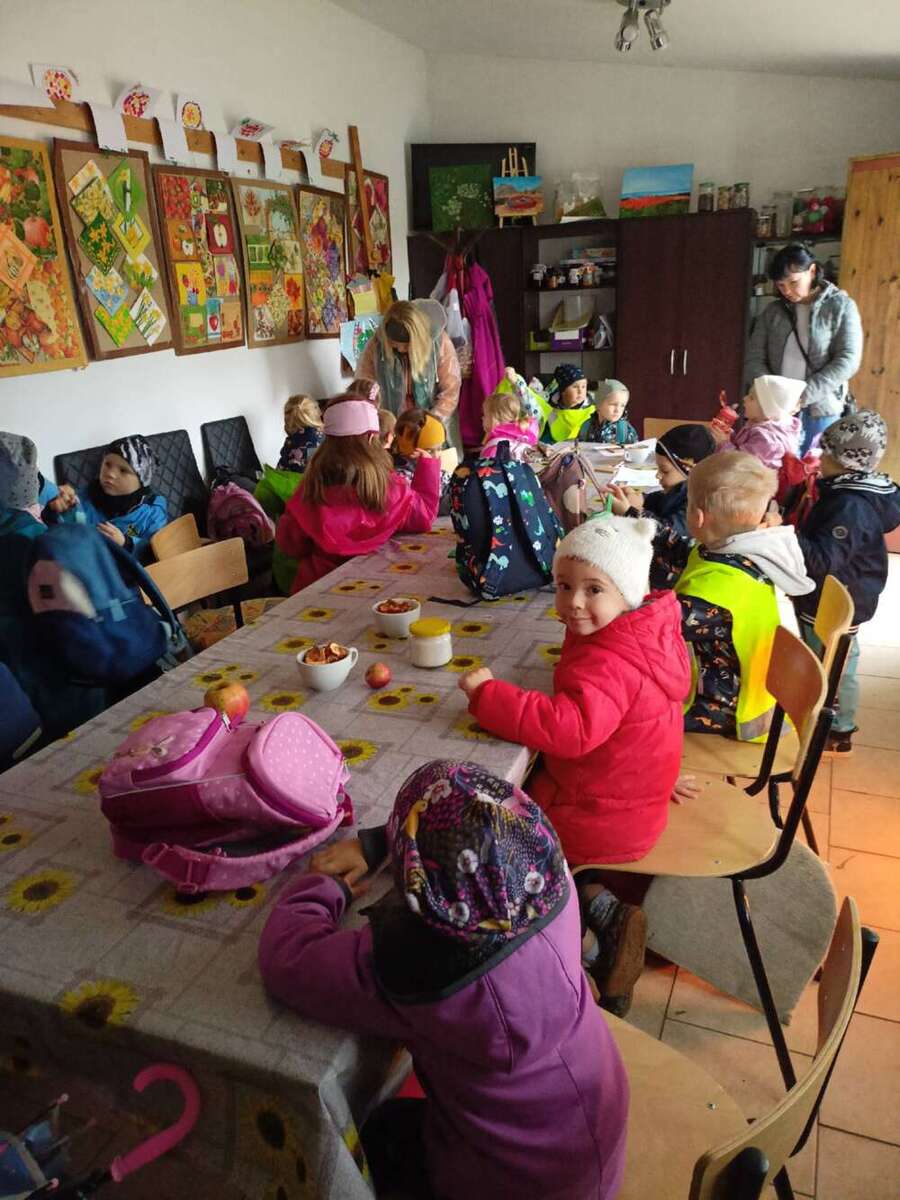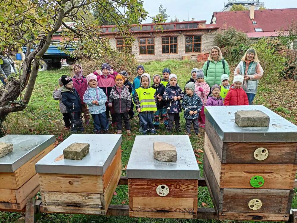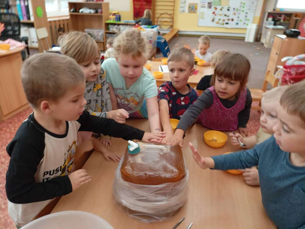 Navštívili jsme místní moštárnu, kam jsme donesli jablíčka ze školkové zahrady a děti mohly pozorovat celý proces od přineseného jablíčka, přes moštování a zpracování částí jablek, až po samotnou ochutnávku lahodného moštu a jako bonus se mohly podívat i na to, kde bydlí včeličky.
