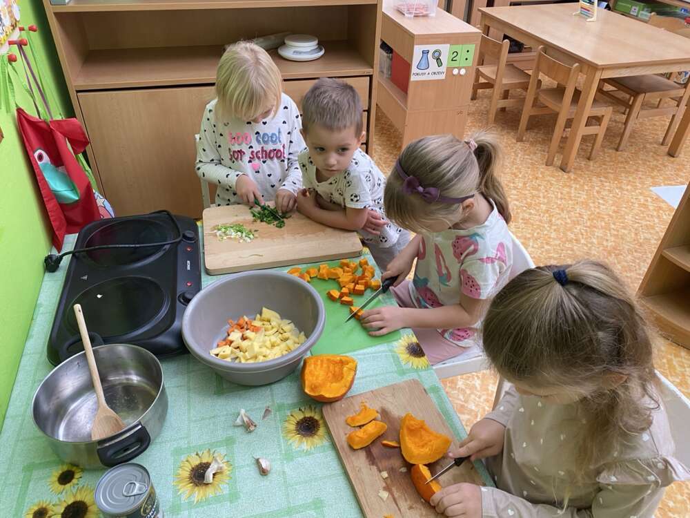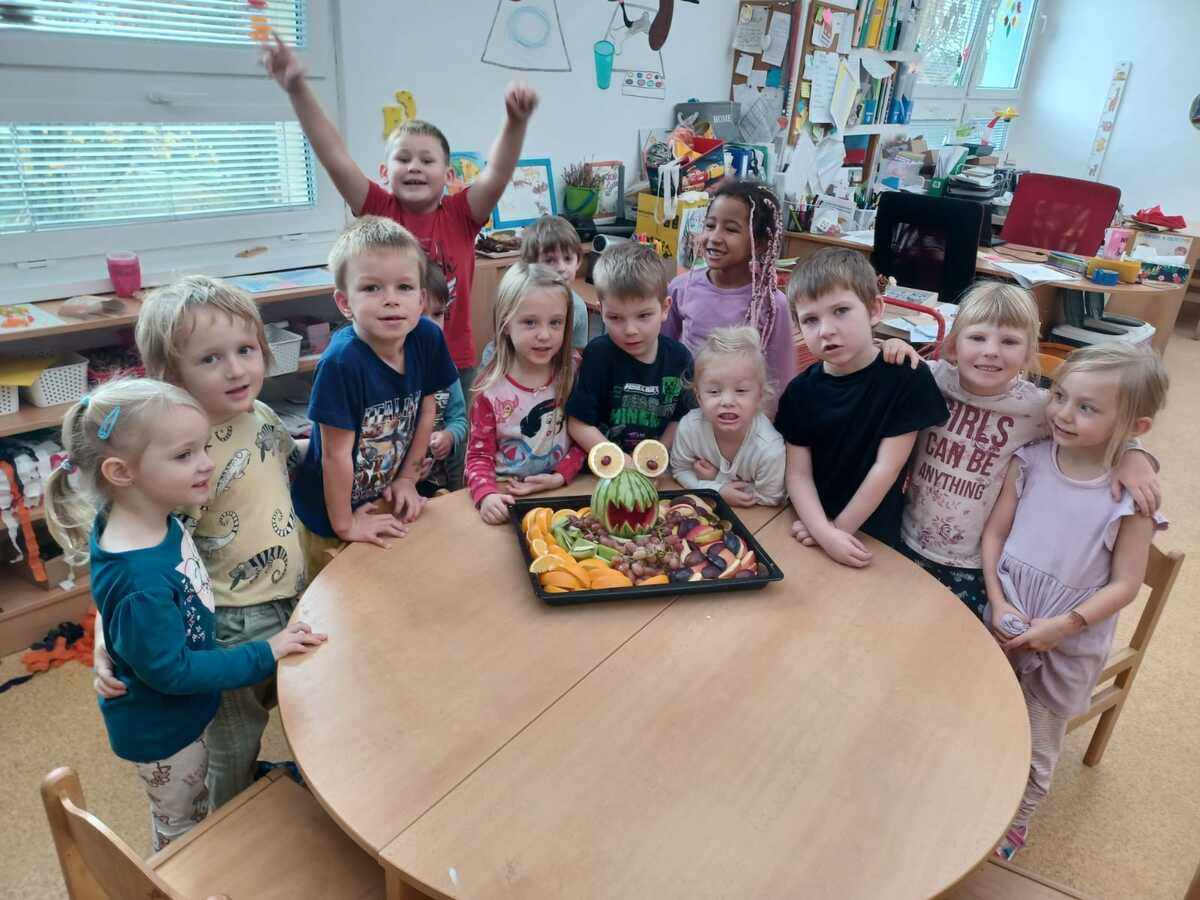 Naše děti si připravovaly zdravou svačinku v podobě ovocných salátků, upekly jablečný závin, uvařit dýňovou polévku, společně jsme stihli oslavit pár svátků a narozenin, kde rodiče připravili pro děti krásně nazdobené ovocné mísy,